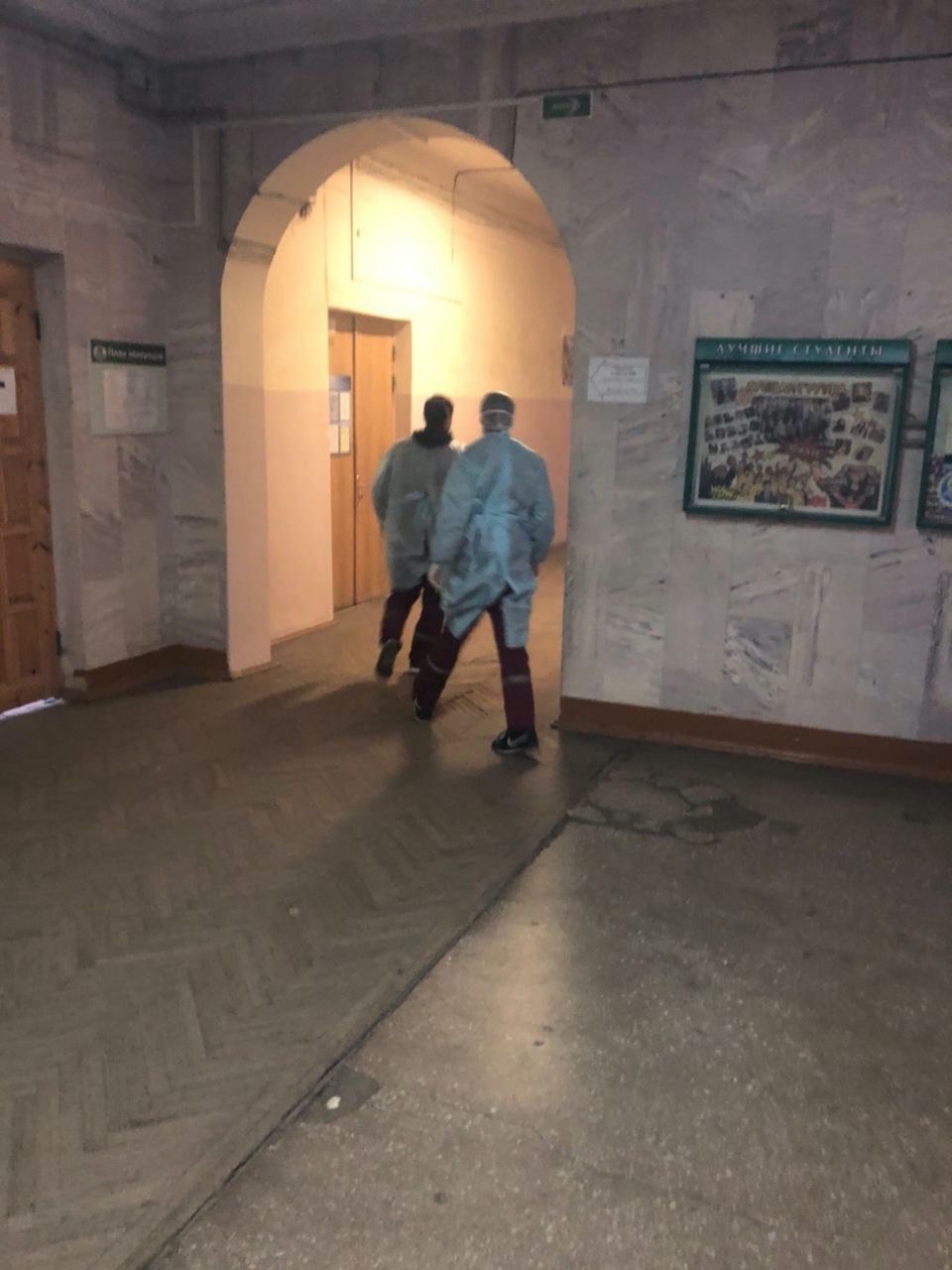 В данный момент в корпусе проводятся операции медиками с одежде химзащиты.