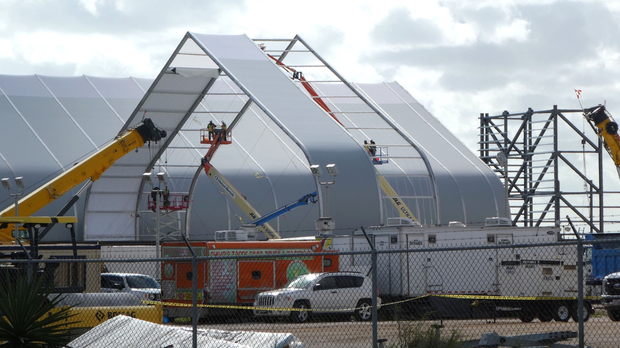 Маленькая палатка возле здания Stargate завершена. Собрано несколько секций второй большой палатки [3-е фото].