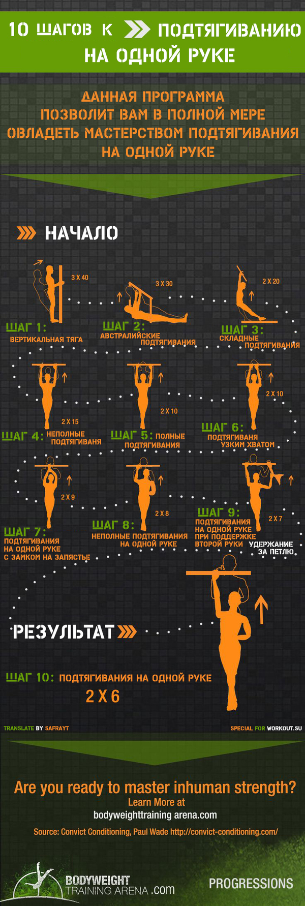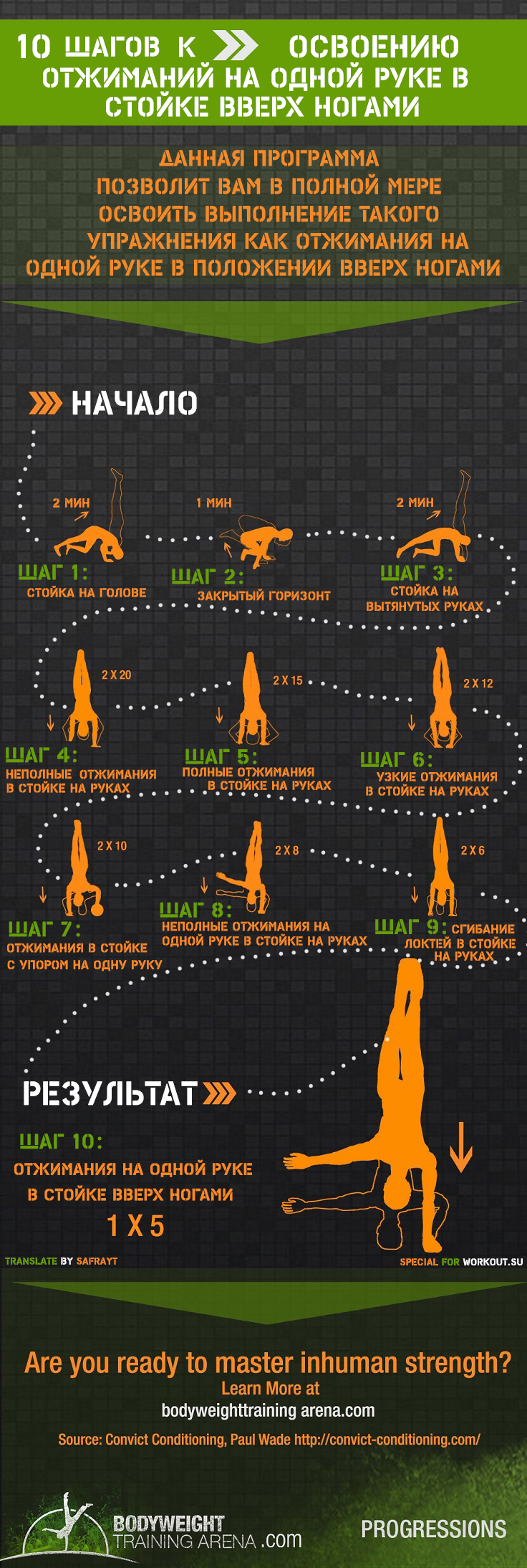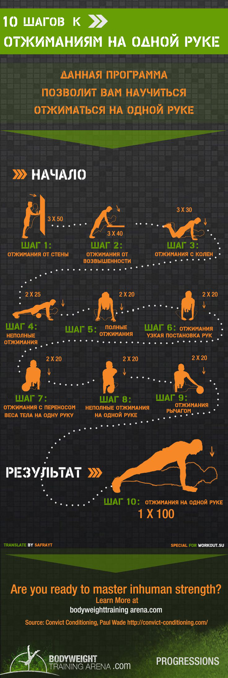 Серьезно? Один подход отжиманий на 1 руке в СТО повторений? Это как вообще? Я не специалист, но сколько людей в мире на такое способны? Четыре?