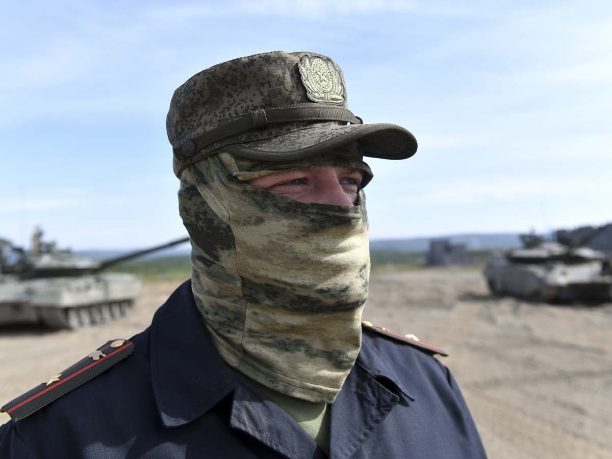 Лицо командира танкового батальона показывать нельзя, так же как и бойцов. Оказавшись перед объективом фотоаппарата или телекамеры, они надевают балаклавы.