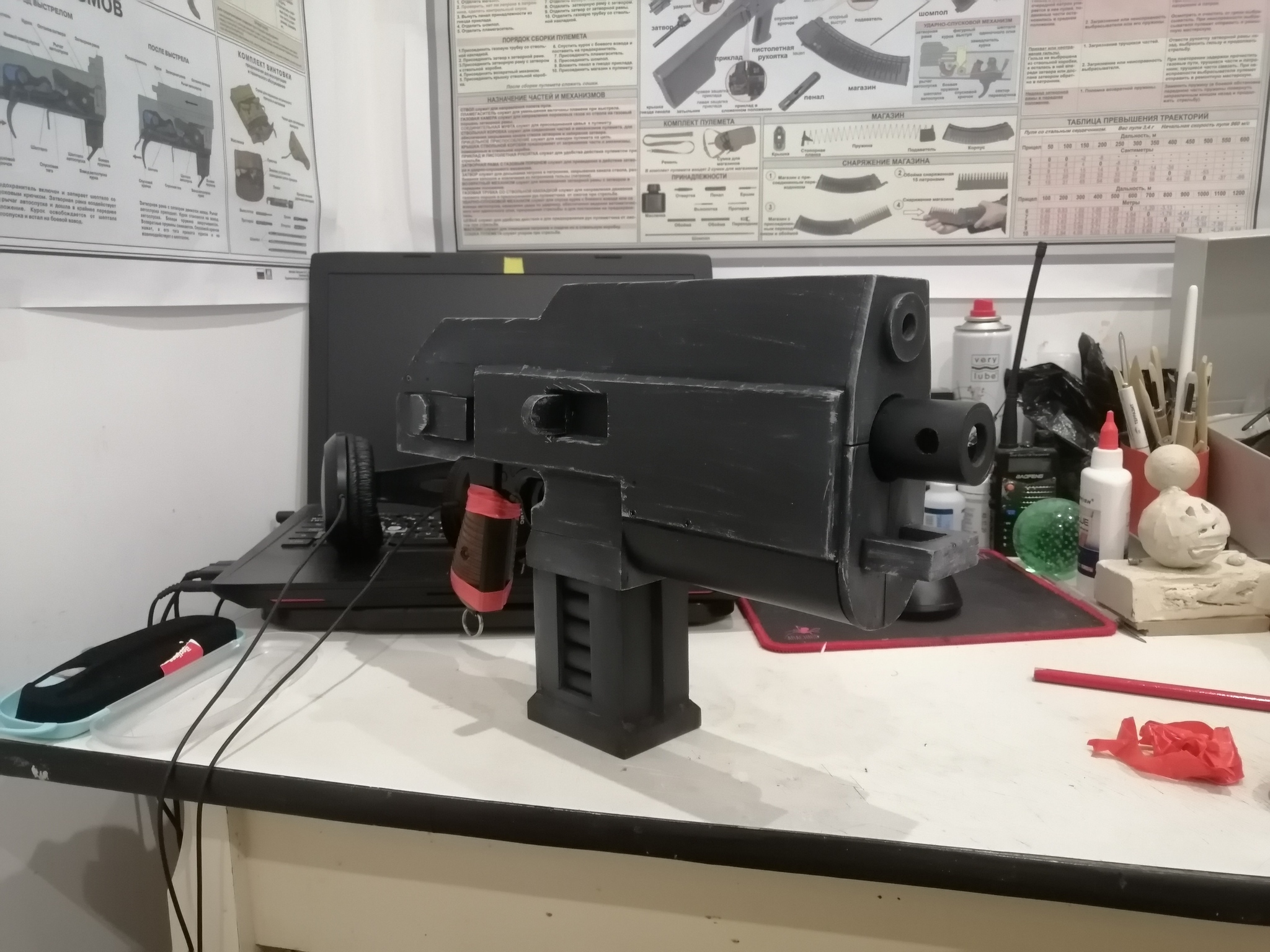 Я занимался технической частью - склеил листы пвх, загрунтовал, вышкурил, максимум покрасил в базовый цвет.