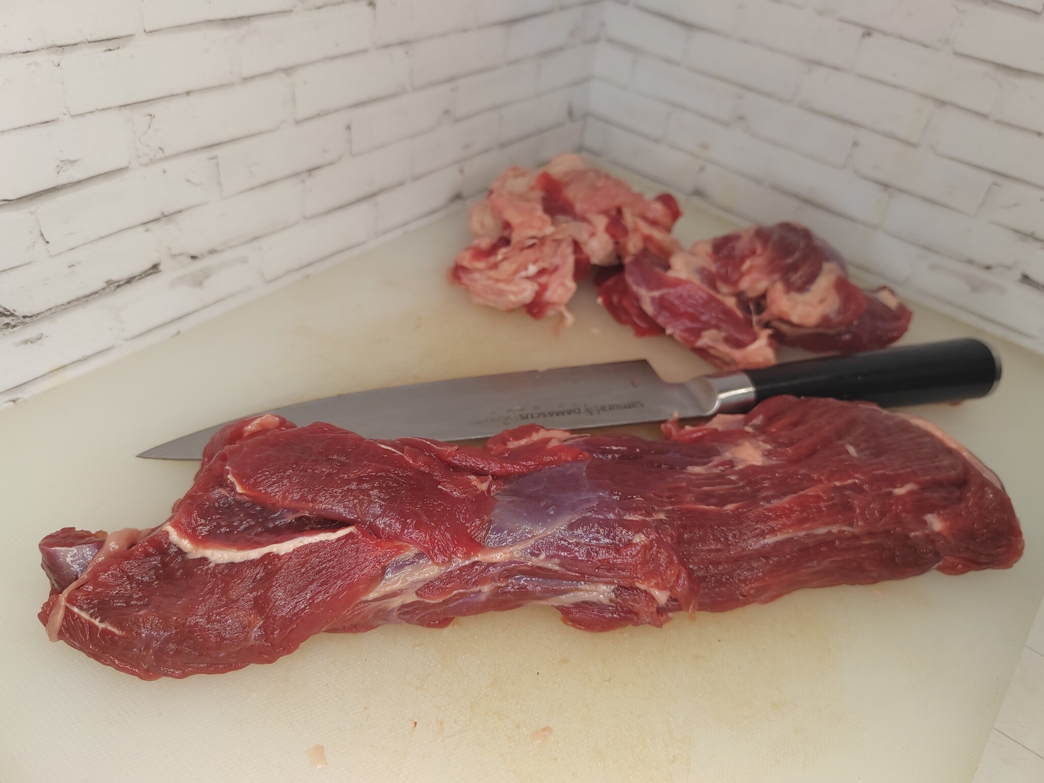 3. Зачищаем говядину от самых оголтелых плёнок и не менее оголтелого жира. Свинью от подобного зачищать не нужно будет.