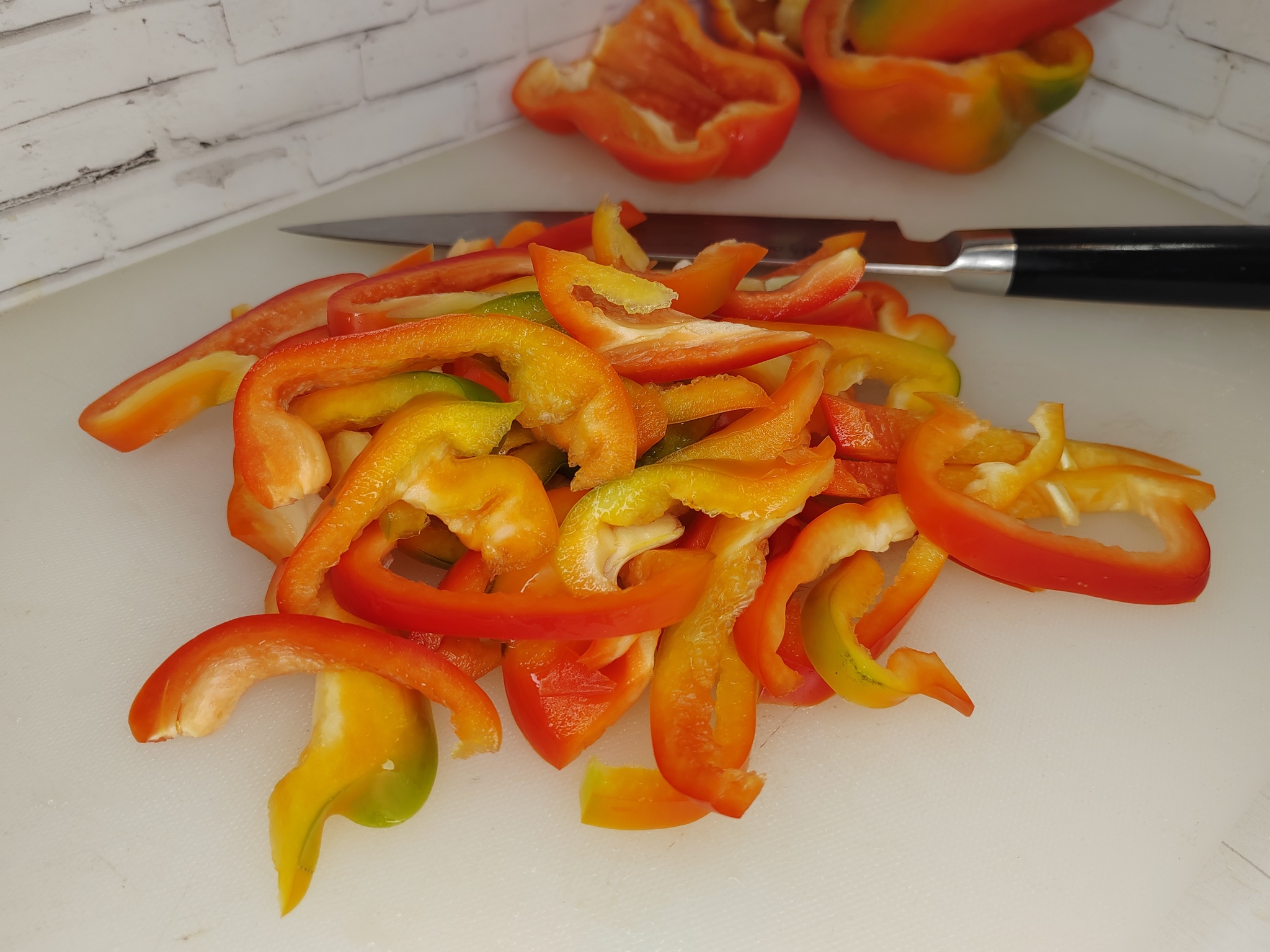 27. Пока тесто отдыхает чистим и шинкуем перец (какой-нибудь соломкой).