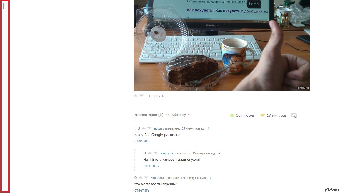 14 Cypok 12 лет назад Боковая полоса мгновенной прокрутки Наверно я тот еще слоупок, но я только что заметил эту очень удобную функцию. Админы Пикабу, БОЛЬШОЕ вам спасибо =) [моё] Пикабу Нововведение Удобство