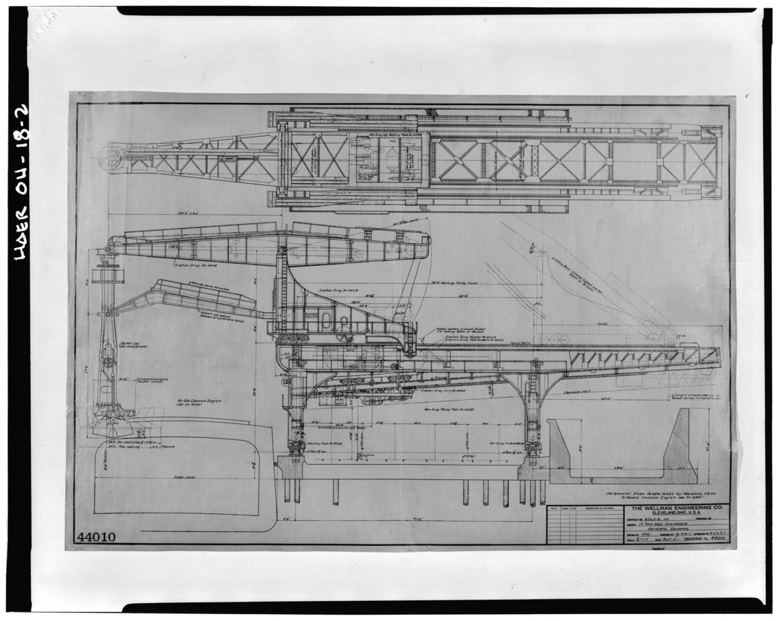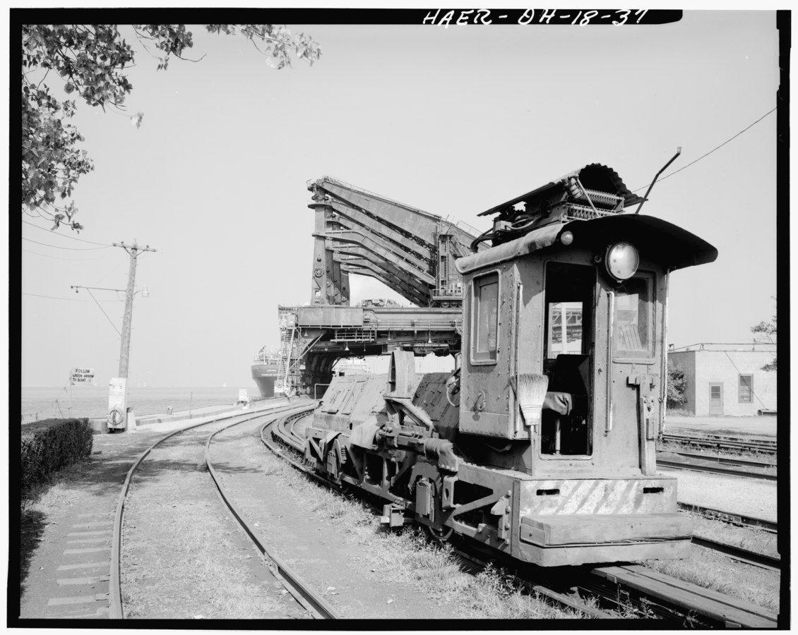 Разгрузчик Хьюлетт с электроприводом двигался по двум параллельным путям вдоль доков, обычно с четырьмя железнодорожными путями между ними.