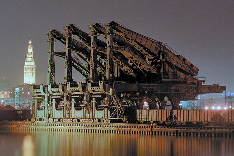 Начиная с 9:38 хорошо показана работа вагонотолкателя в доках на озере Эри.
