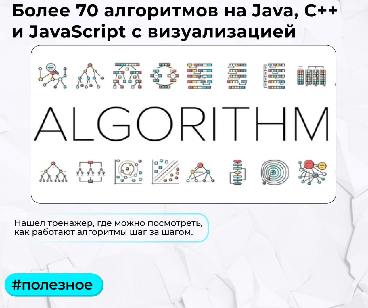 Более 70 алгоритмов на Java, C++ и JavaScript c визуализацией