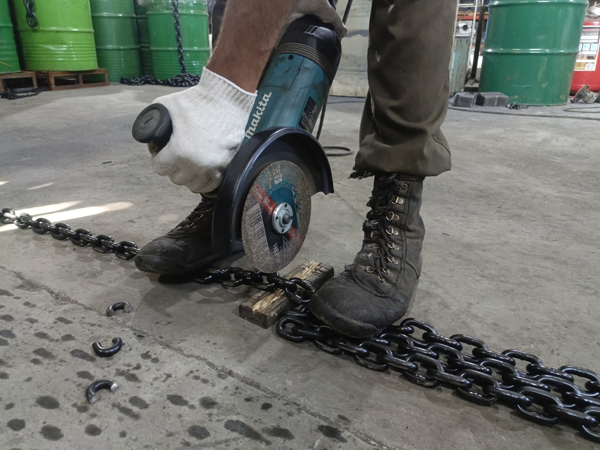 И что то мне подсказывает, что на фото ниже это нифига не правильно. Искры от себя. Ок. А что с положением тела? и как по другому можно зафиксировать цепь?