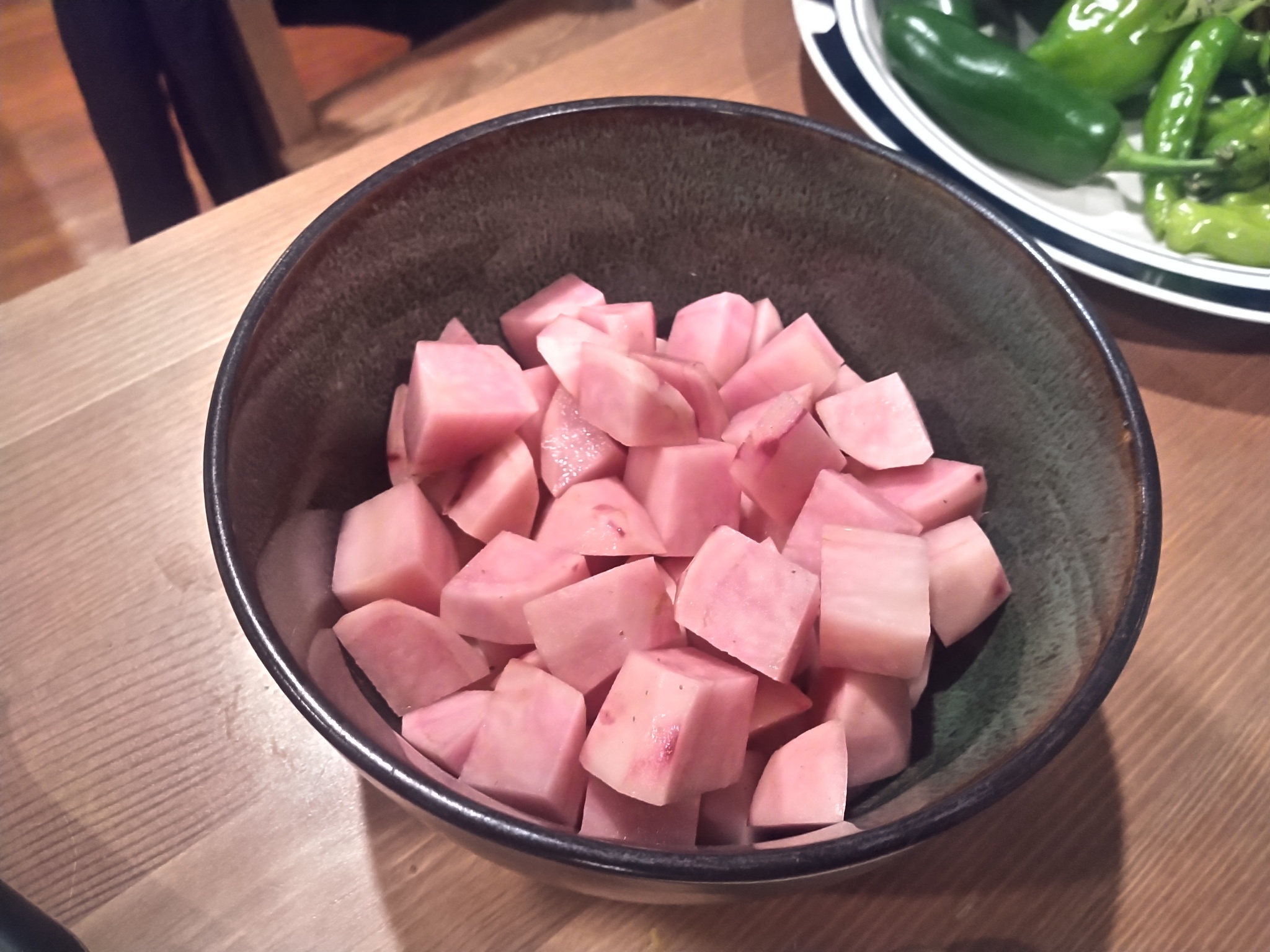 Картофель был розовым. Фермер, у которого я его купил, сказал мне, что он будет розовым, это просто его вид. Большинство картофеля, продающегося в обычных продуктовых магазинах, не розовые.