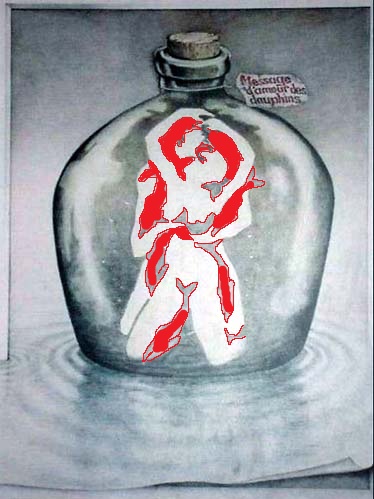 ну вот хер знает. давно ещё я видел эту картинку. по бокам проглядывается нечто отдалённо похожее на дельфинов, но я что-то сомневаюсь, что это и есть те дельфины, которых здесь видят дети, чей разум не развращён порнухой. но блин, если это не те дельфины, ТО ГДЕ МЛЯТЬ ЭТИ ДЕЛЬФИНЫ? я не вижу