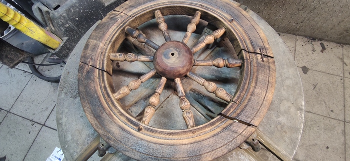 Колеса десятилетиями хранились у людей на чердаках и в кладовках и с годами обросли немалым культурным слоем, который было необходимо во первых ликвидировать, а во вторых с годами древесина сильно рассохлась и немного ее отмочить не будет лишним.