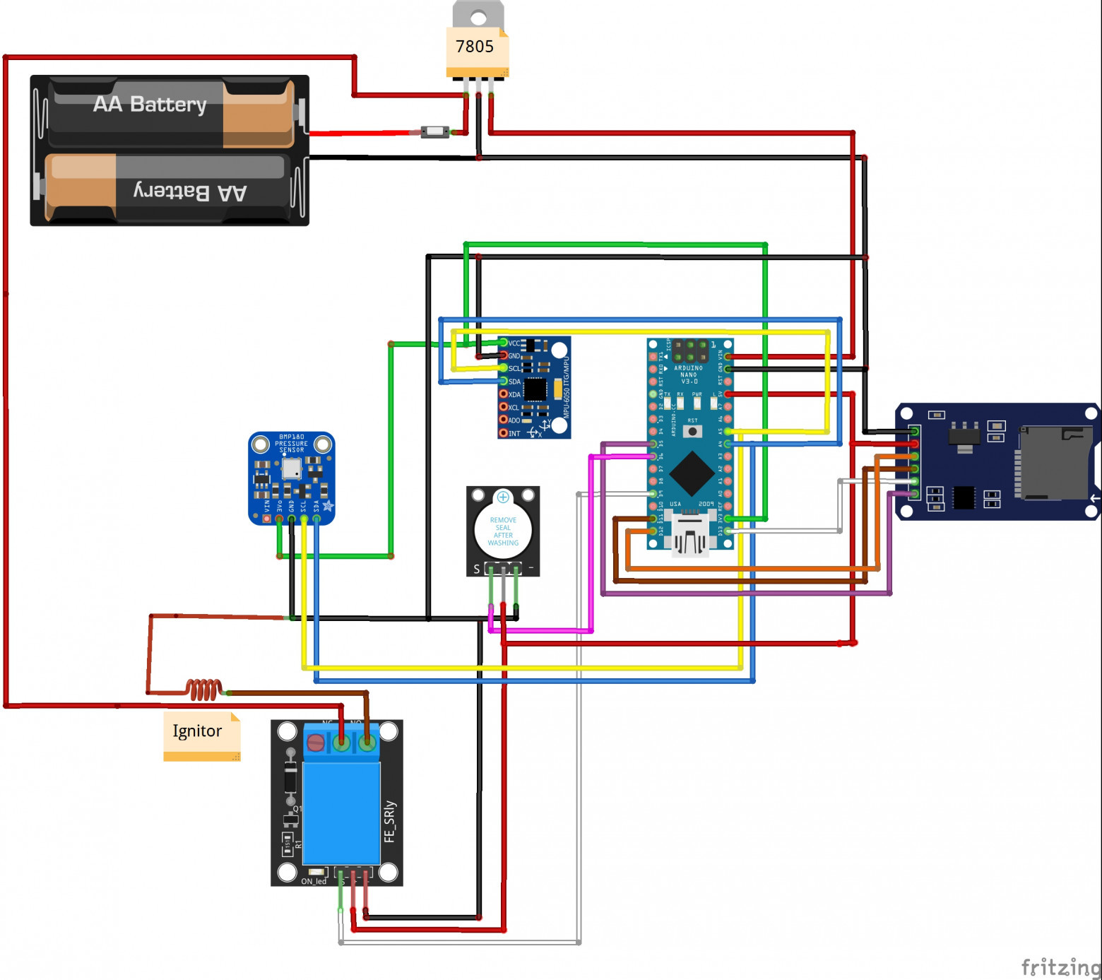 В качестве бортового компьютера я использую собственную схему, в основе которой находится Arduino Nano.