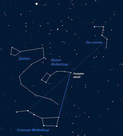 Фотография в верх ногами, в наших широтах ручка ковша смотрит в лево. Соответственно малая медведица выше и правее.