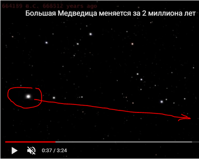 Это видео показывает, как созвездие Большой Медведицы плавно изменяется на протяжении двух миллионов лет. Можно увидеть, как оно выглядело один миллион лет назад, как выглядит сейчас и как будет выглядеть через один миллион лет.