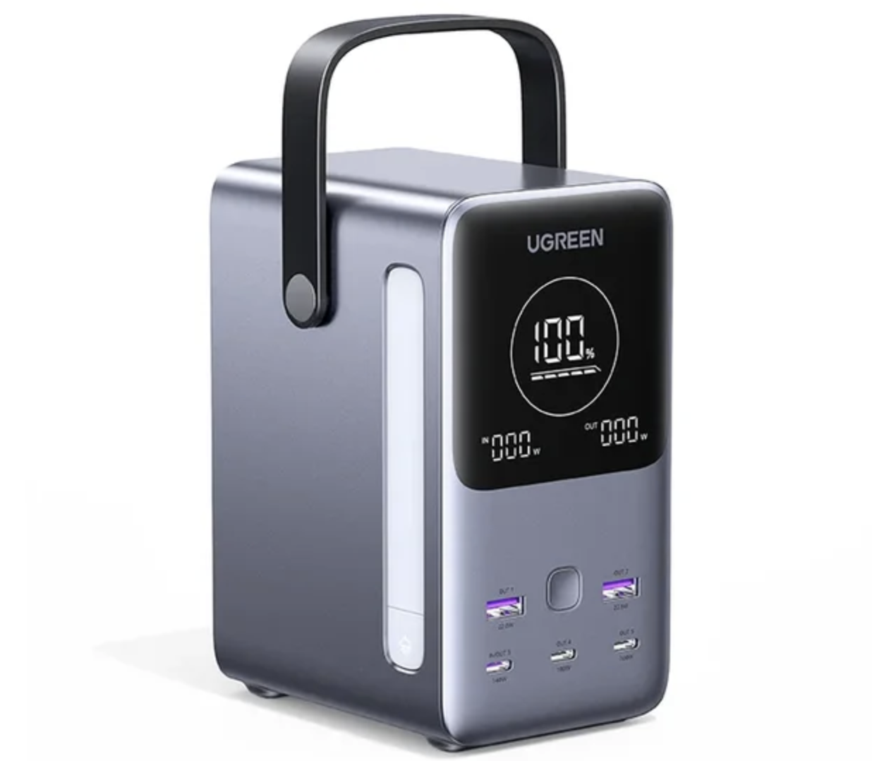 Есть встроенный фонарь и экран с отображением заряда, входящей и исходящей мощности. Незаменима в путешествиях, кемпинге или при отключении электричества.