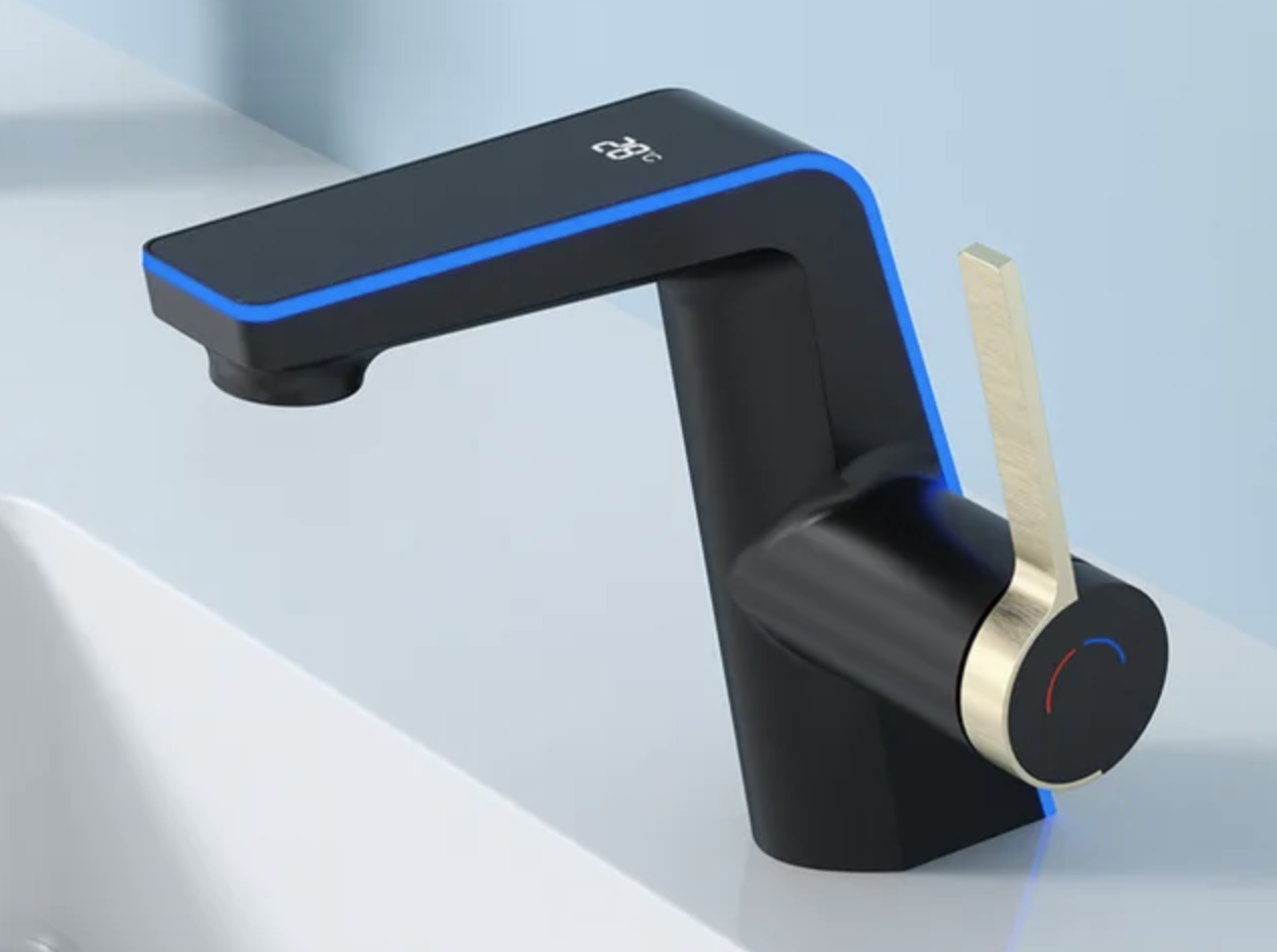 Смеситель выполнен из латуни, устойчивой к коррозии и механическим повреждениям. Температурный дисплей показывает текущую температуру воды, работая без батареек — питание идёт от потока.
