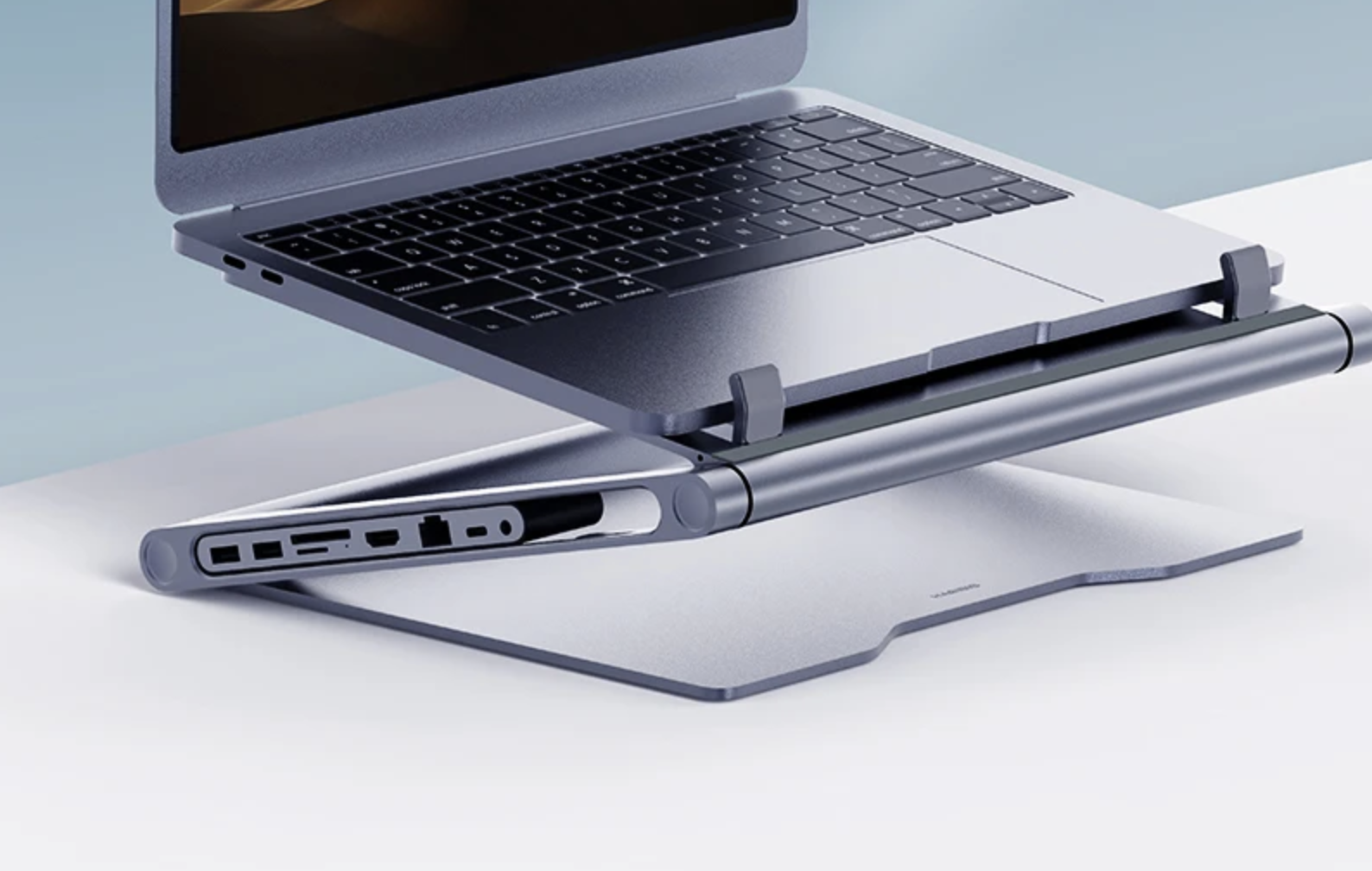 Подставка создаёт более комфортное пространство для работы: она поднимает ноутбук на удобный уровень и помогает сохранить правильную осанку. Алюминиевая конструкция обеспечивает устойчивость при наборе текста и улучшает охлаждение, отводя тепло от корпуса ноутбука.