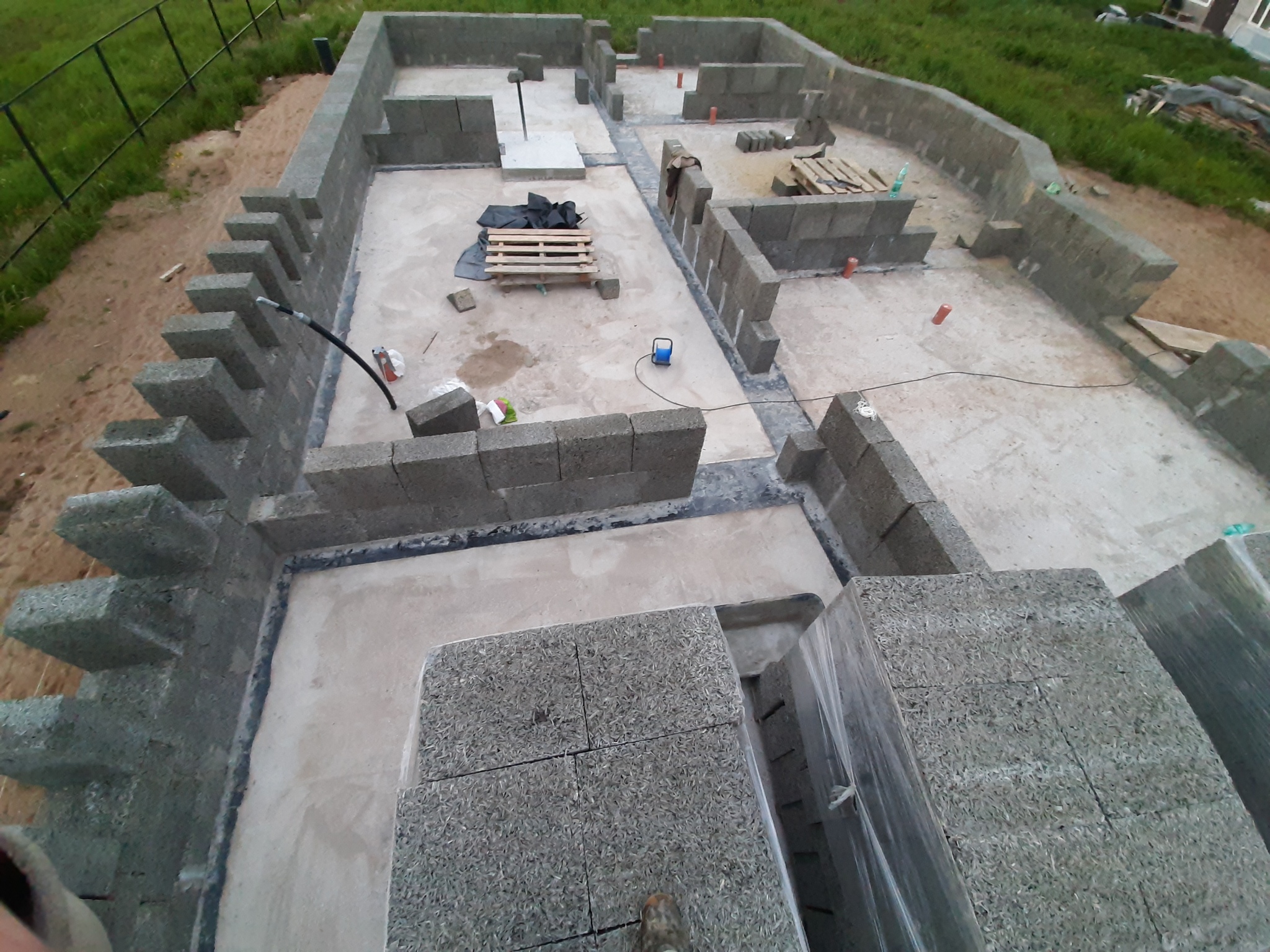Сьездил на другой обьект из арболита. Да у меня вообще кладка идеальная, почти. У профи, из дружественных нам южных стран, швы по сантиметру, у меня один-три миллиметра. У них верх кладки волной , у меня визуально ровно.