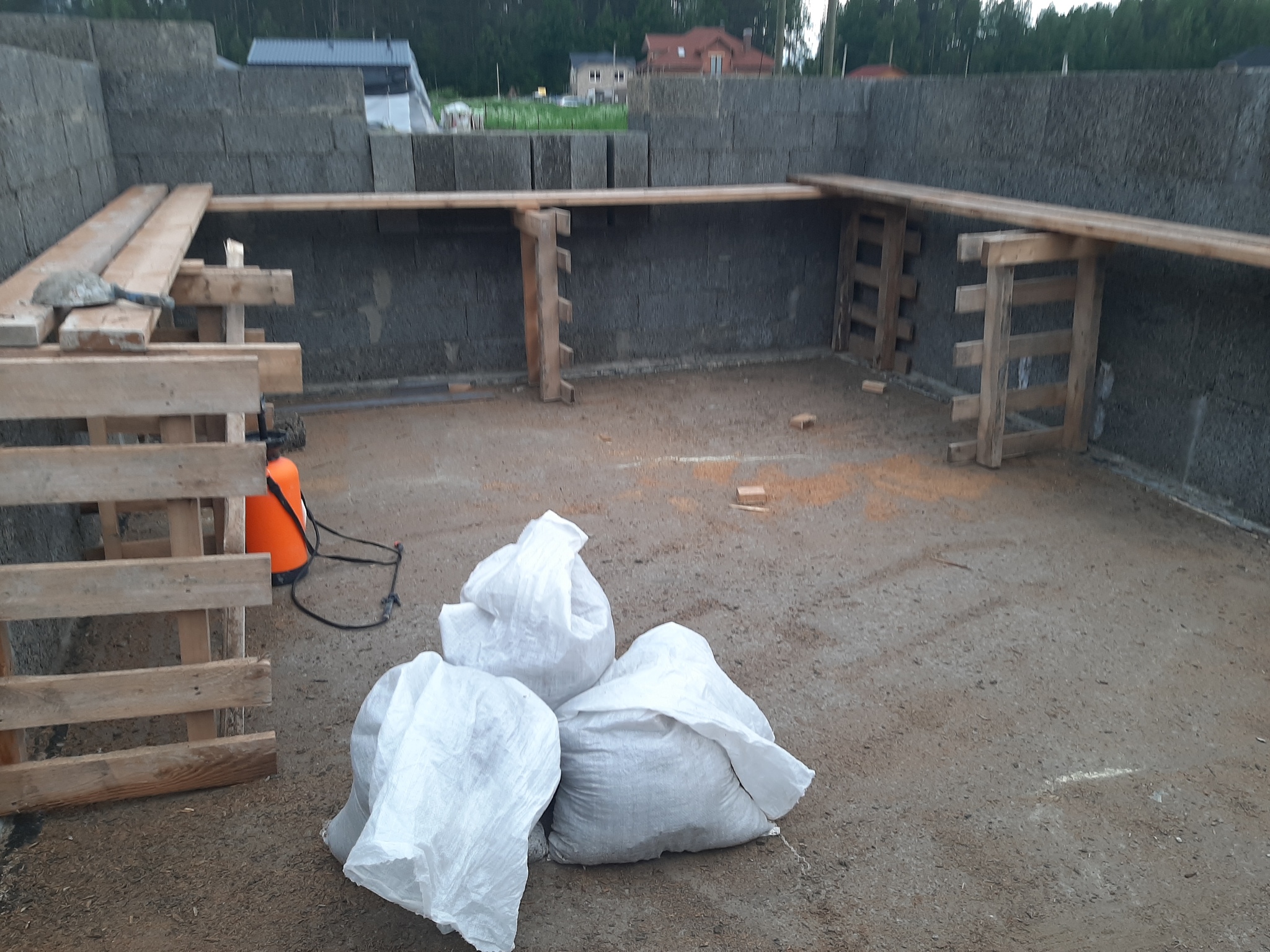 Сейчас начал заливку колонн под трехметровую балку над проемом в центральной стене.