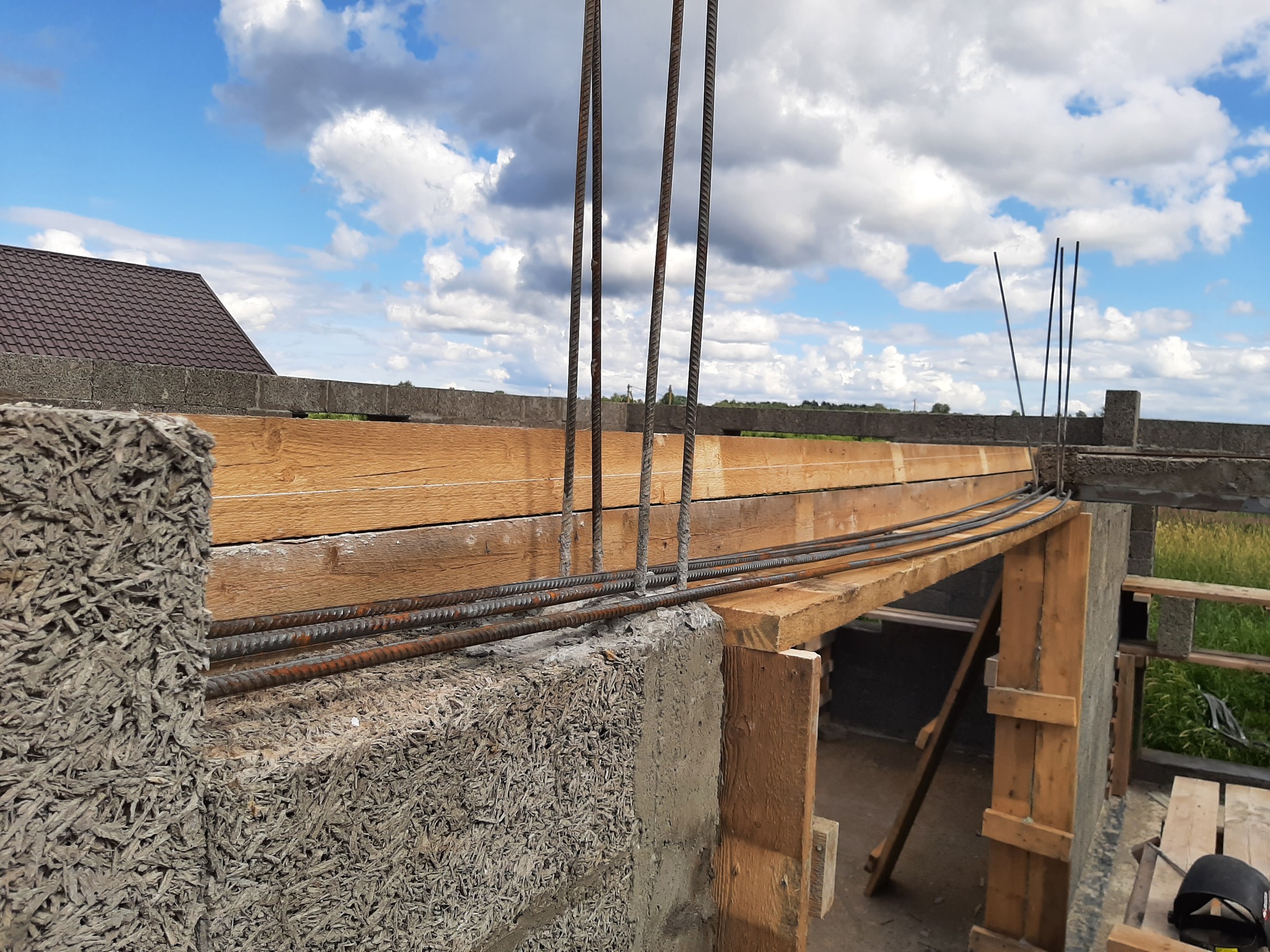 - Ну раз колонны лить собрался лей до верхнего армопояса, надежнее будет. Мысль показалась здравой, поэтому подвязал к арматуре выпуски по метру для продолжения колонн.
