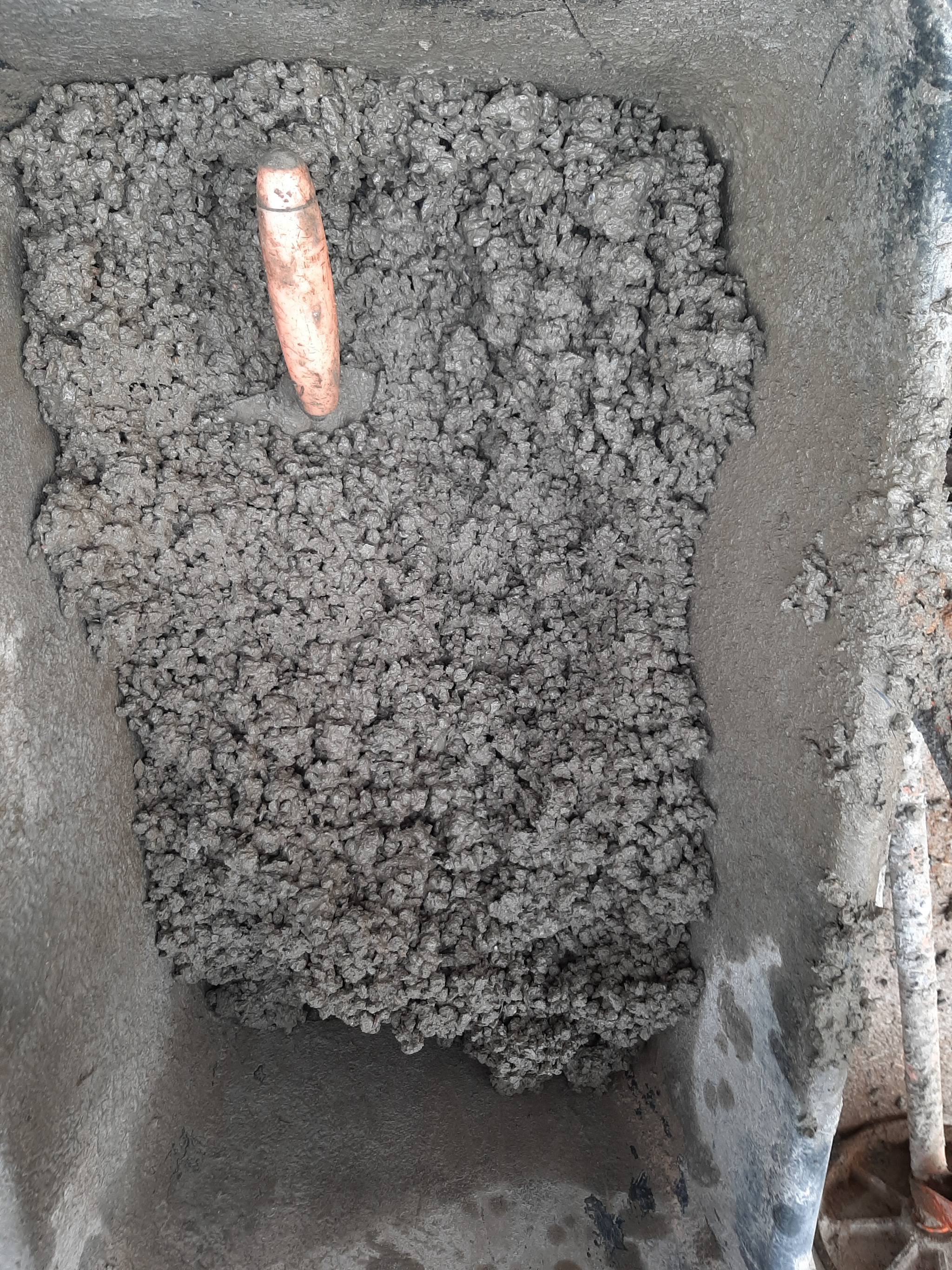 Так бетон выглядит после вибрирования. Выходит куча пузырьков, поверхность выравнивается.
