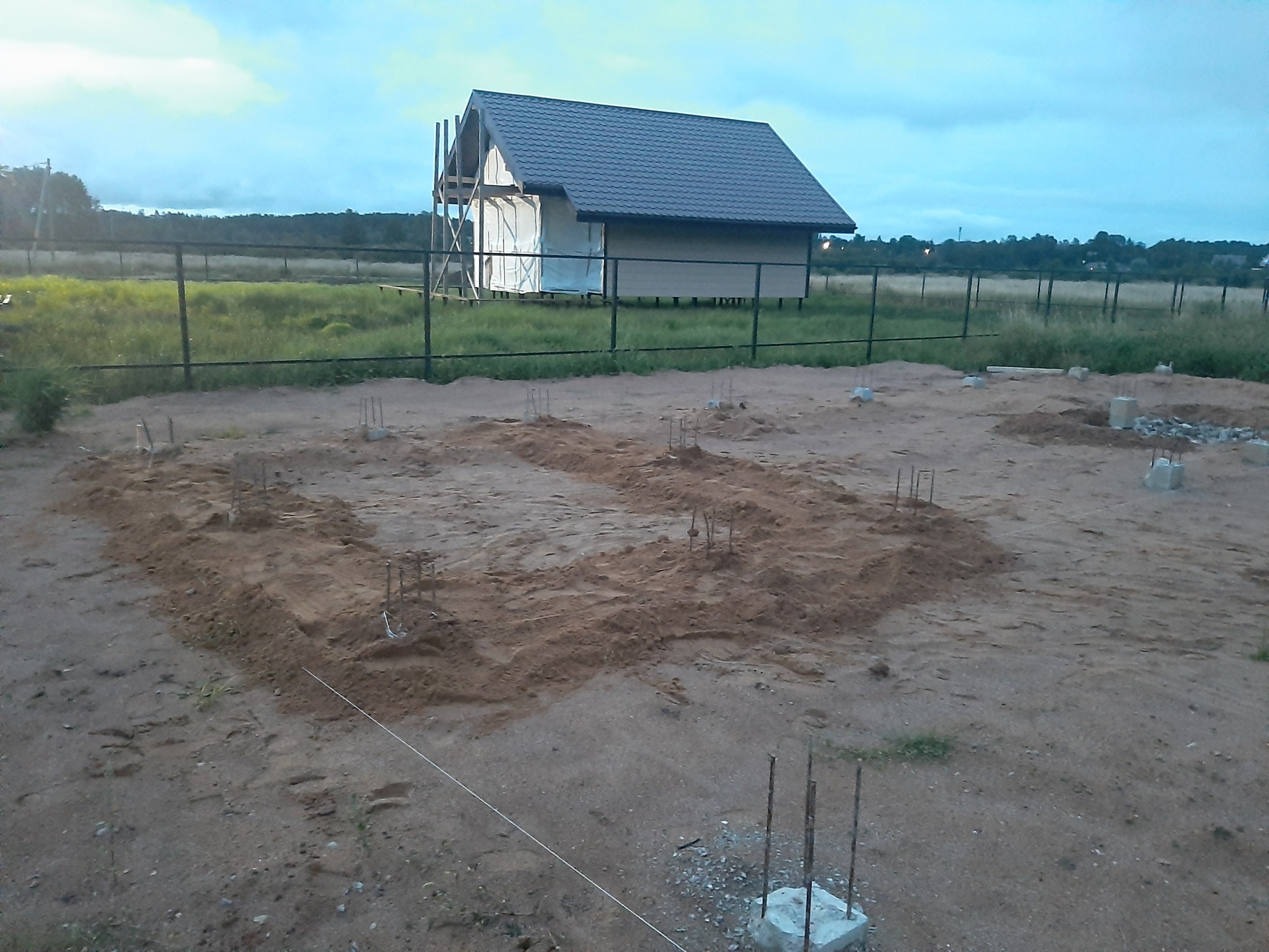 Заказал экскаватор и 200 кубов песка. Купил виброплиту на авито. Убрал плодородный грунт с половины участка. Отсыпал и утрамбовал песком. Отправил письма на установку свай. Выбрал самого адекватного и недорогого подрядчика.