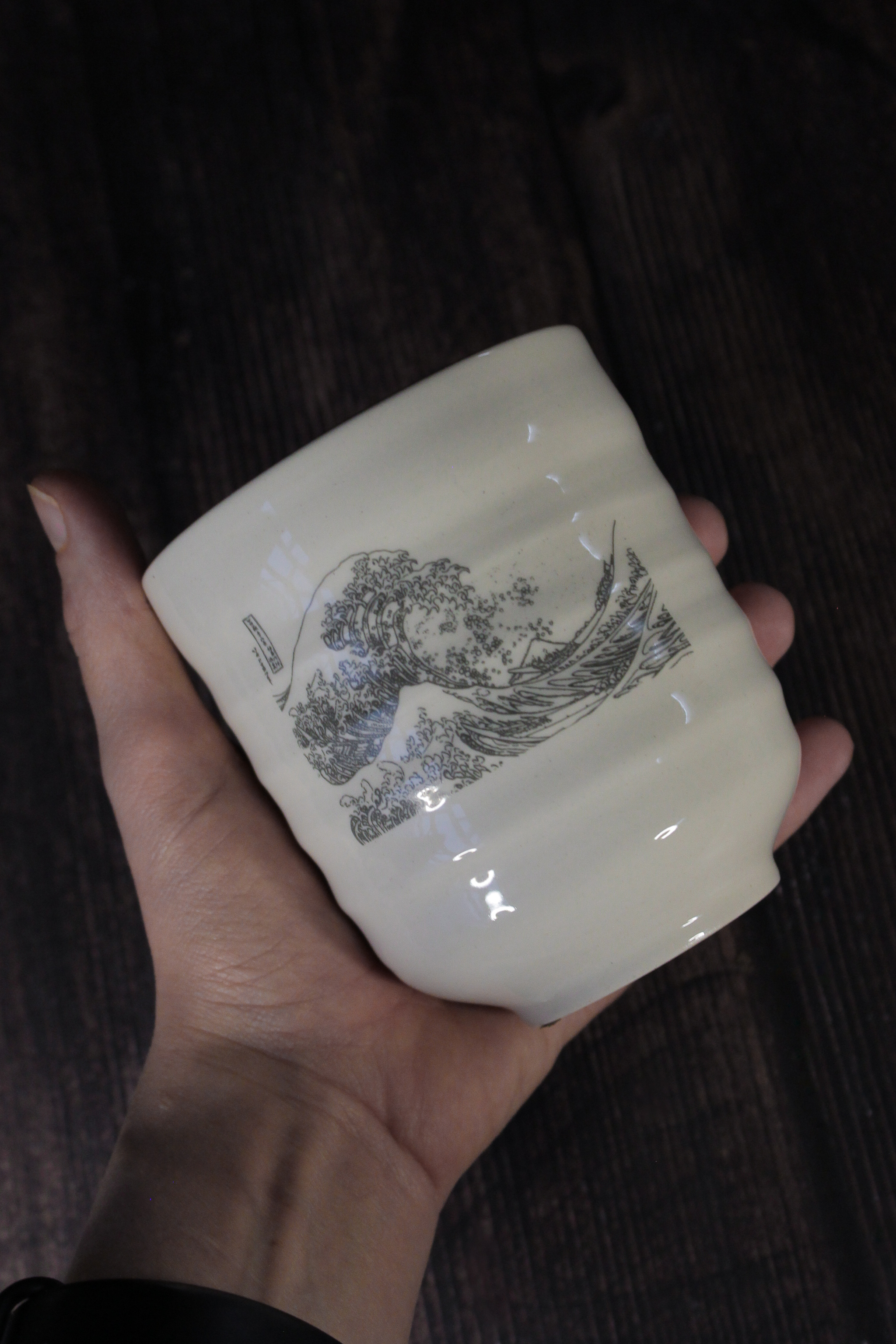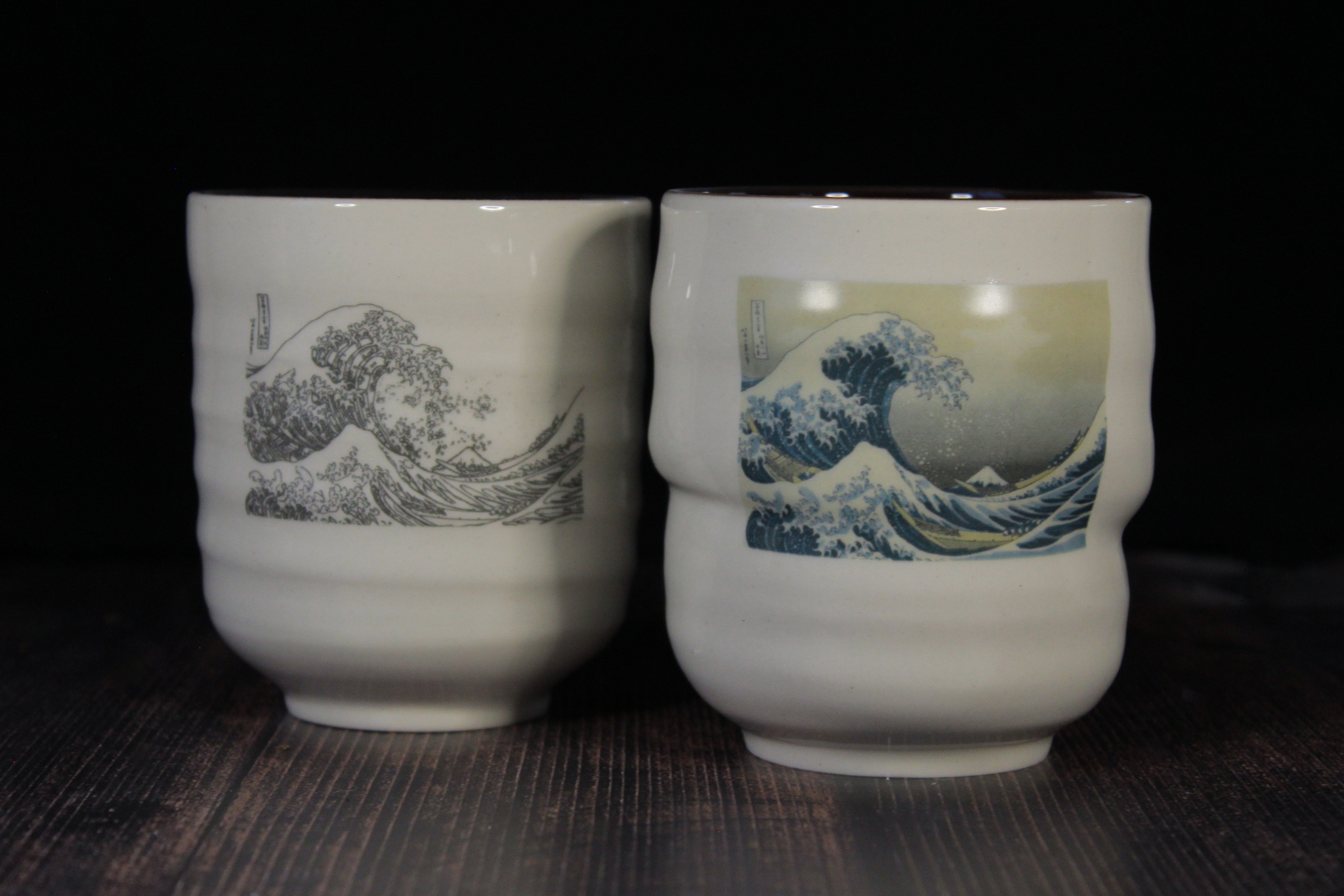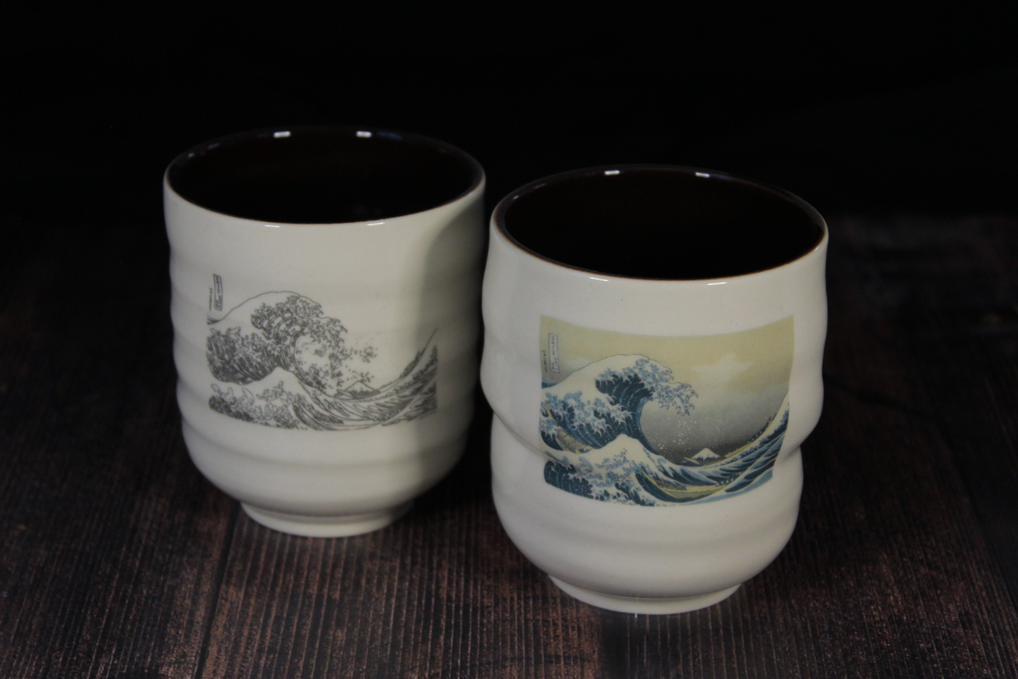 Меото юноми- это традиционная японская пара стаканчиков для чая. по традиции стаканчики делаются разных размеров, один чуть больше для мужчины и поменьше для женщины. вдохновившись одним из моих любимых художников Кацусика Хокусай мы создали такую замечательную пару. стаканчики делались без ручек не спроста, в холодные зимы, японцы грели руки плотно прижимая их к стаканчику, а ребристая форма помогала не выскользнуть из рук.