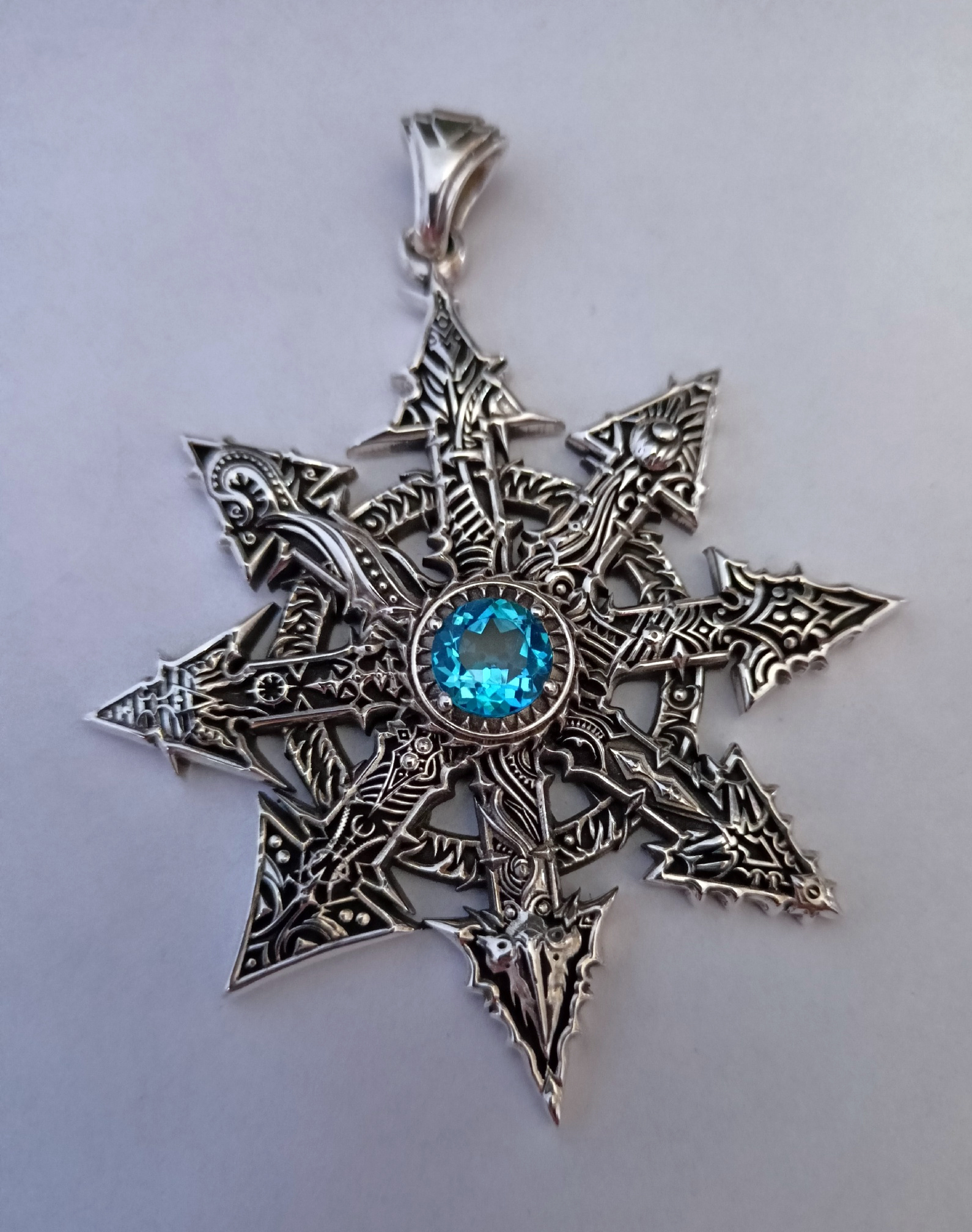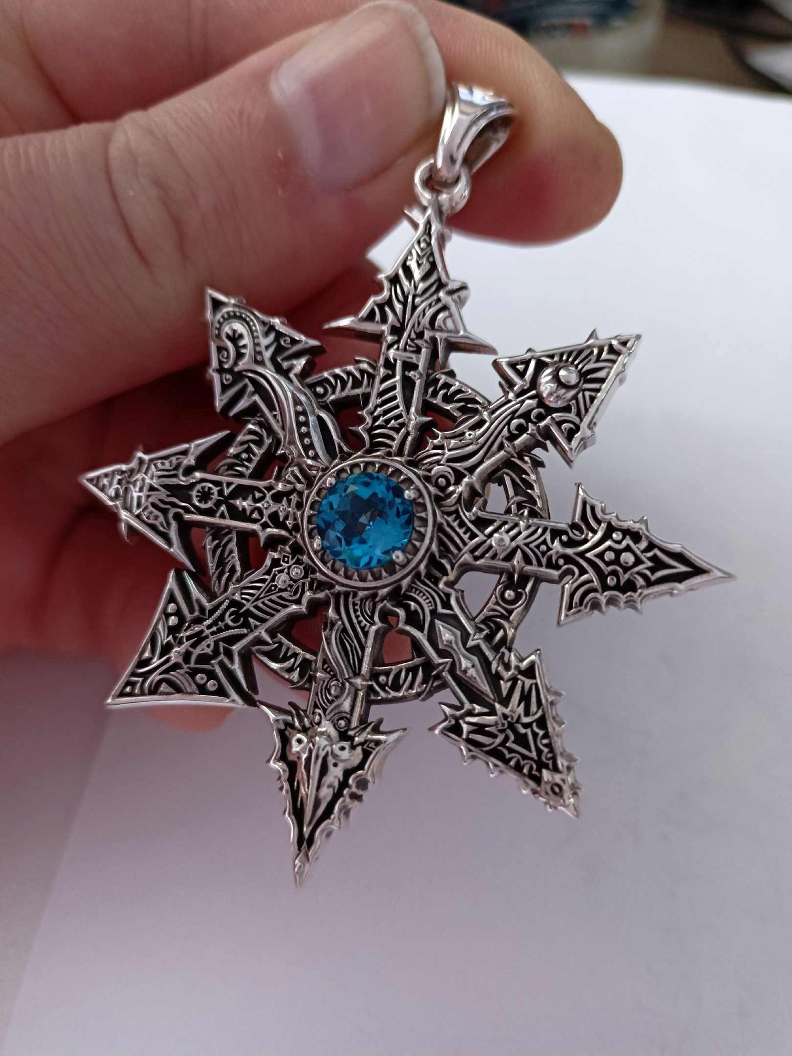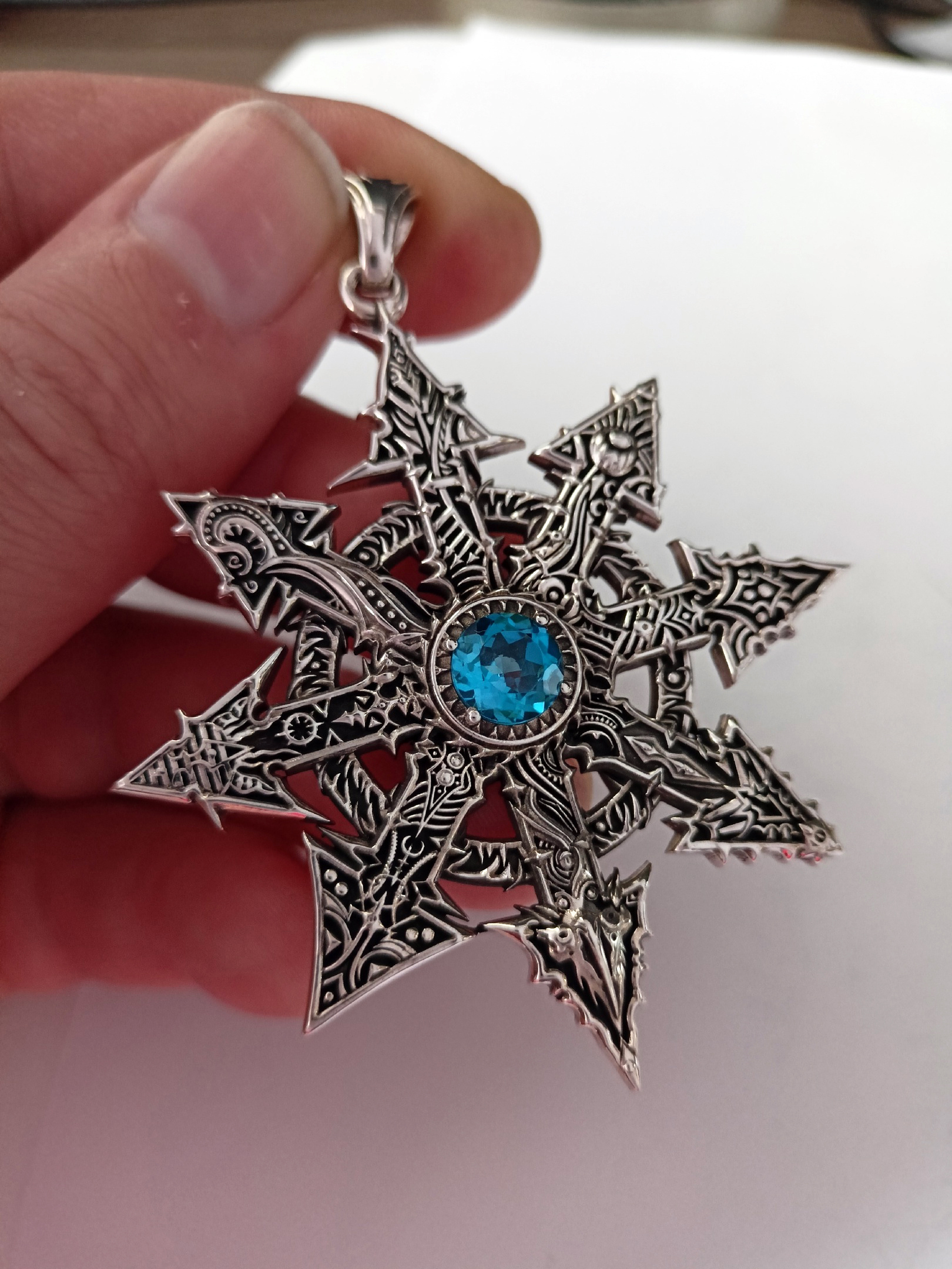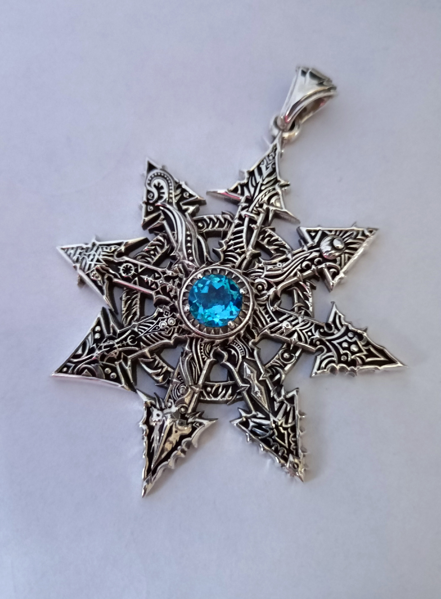 Здравствуйте . Закончил очередной проект по Вахе . Большая Звезда Хаоса с камнем . Материал Серебро . Камень Сапфир . Видео и Фото .