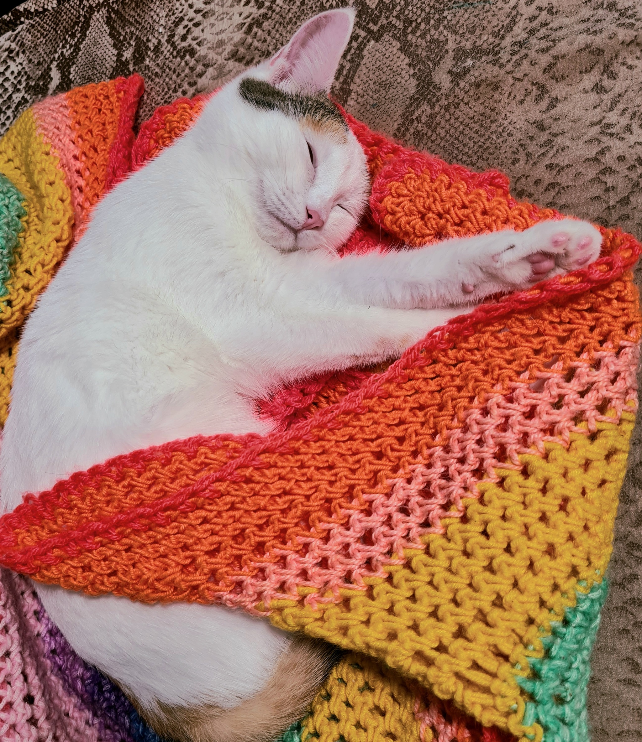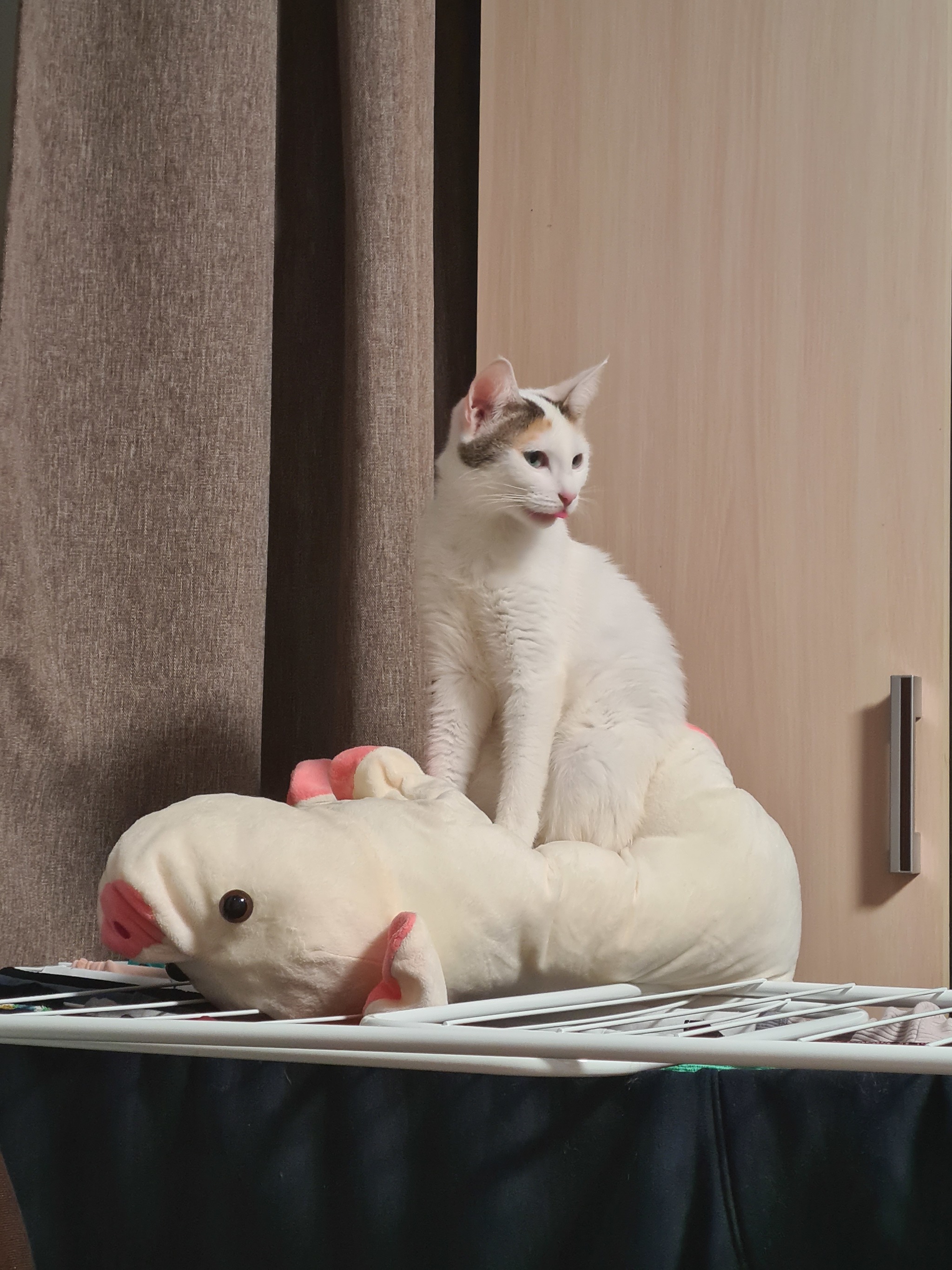 До сих пор Буська и Трисс иногда спят с ней в обнимку, а Муся даёт покровительственного леща, а потом долго вылизывает как своего котёнка.