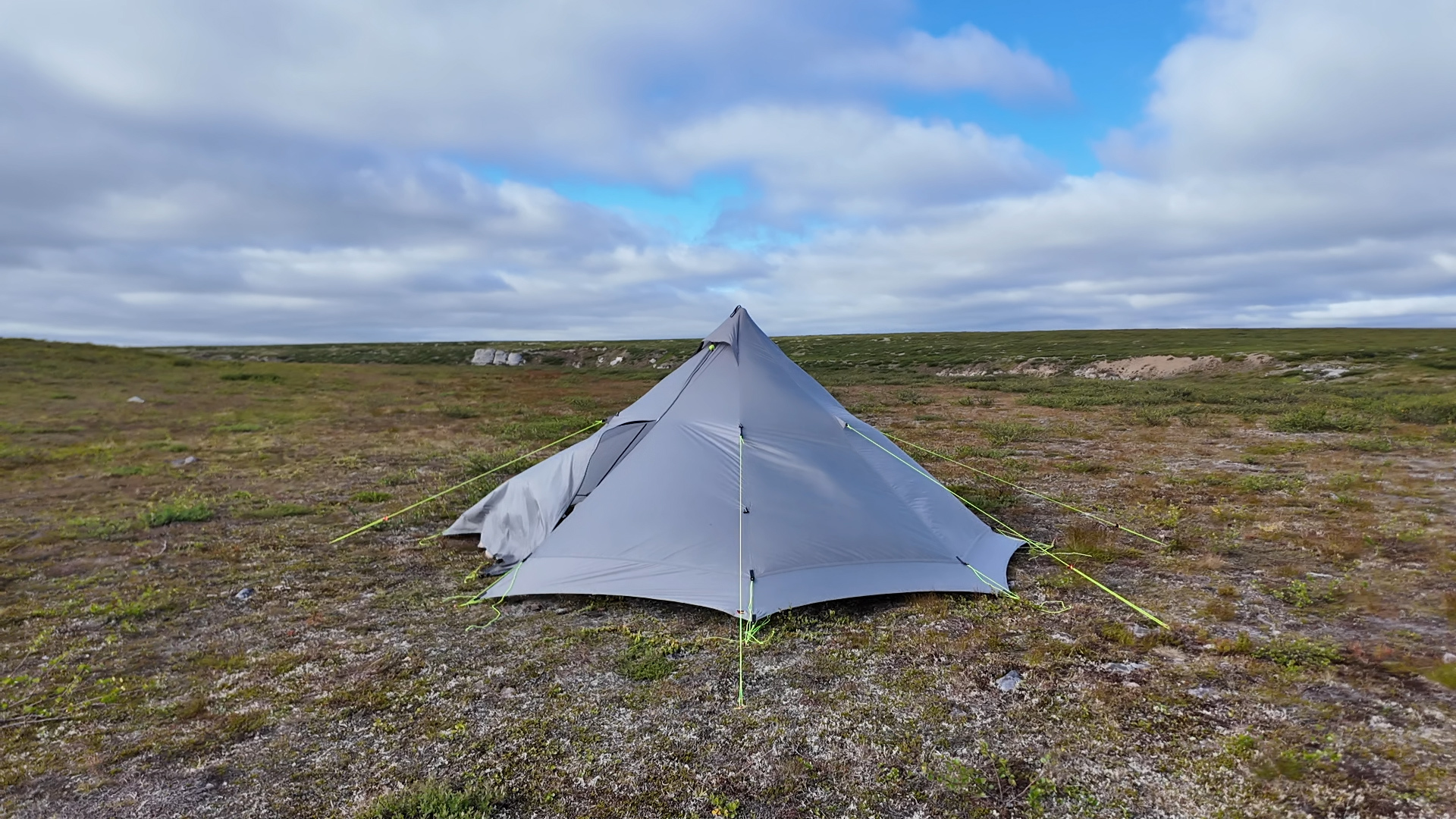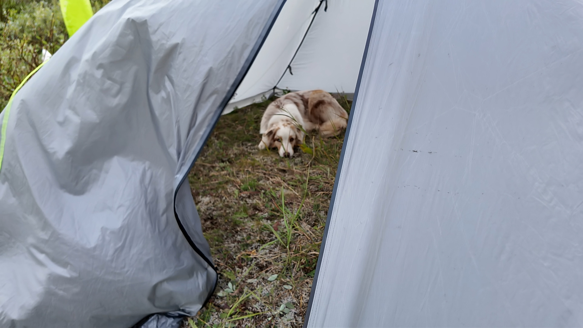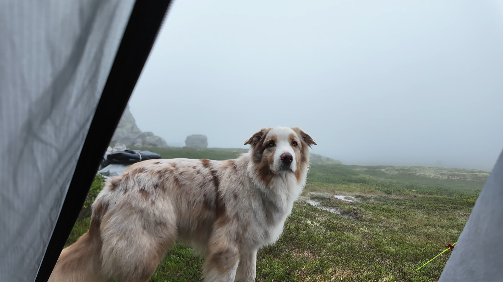 Пока ставили палатку и готовили ужин, набежали облака, а потом опустился туман. Температура +6 градусов.