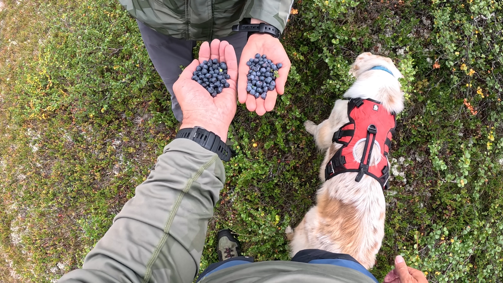 На южных склонах бугров много зрелой черники, снимаем рюкзаки и наедаемся.