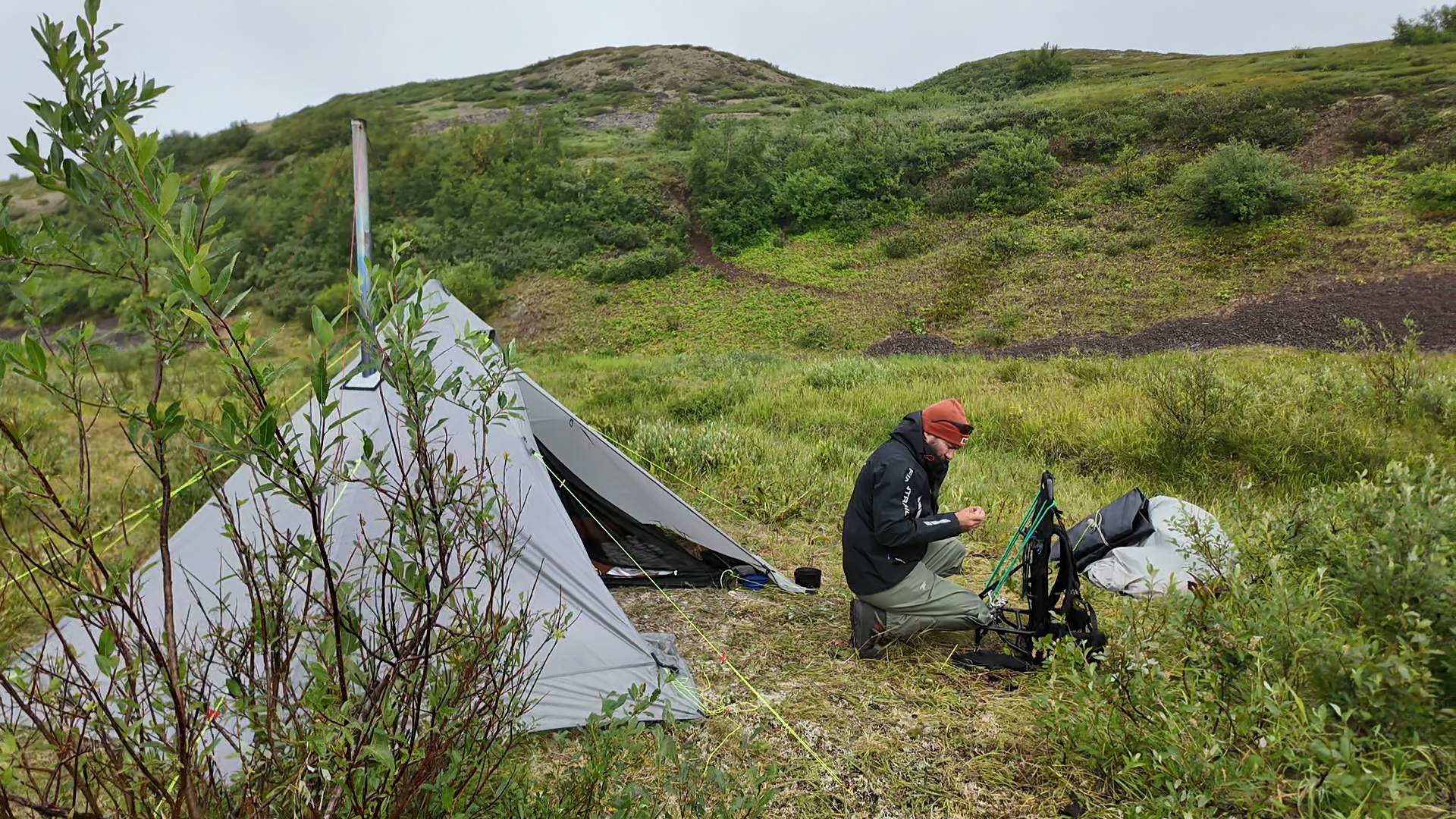 Проснулись в облаке, которое сыплет моросью, холодный ветер. К 11 часам туман поднялся, но мы уже решили, что сегодня остаёмся на дневку. После кофе и завтрака Тарас ушёл на рыбалку и за дровами.