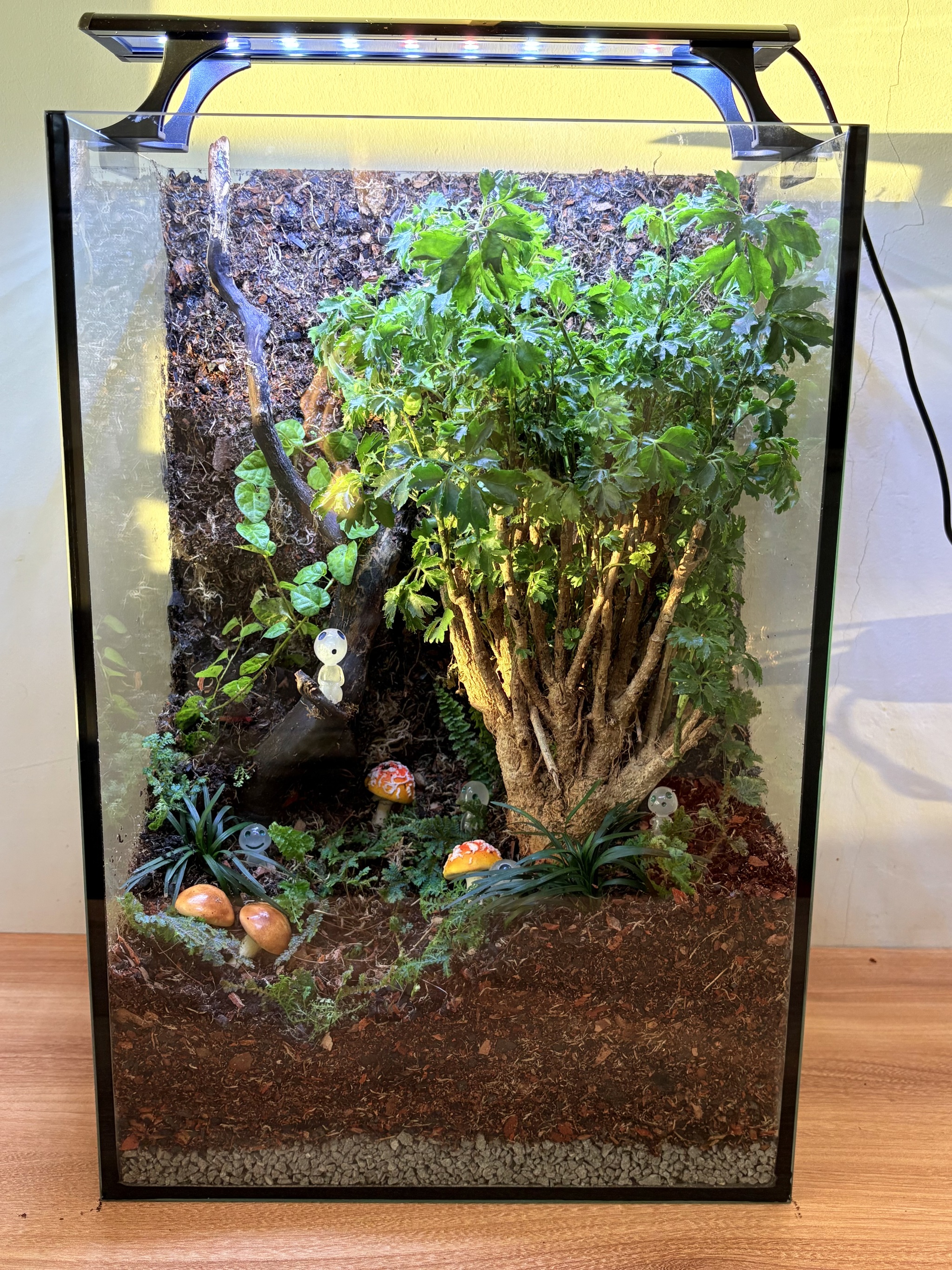 Обычно я дожидаюсь, когда флорариум основательно обрастет зеленой массой и станет густым, но в этот раз не смогла удержаться и выкладываю его сразу после посадки. Очень уж он получился душевный 🌿