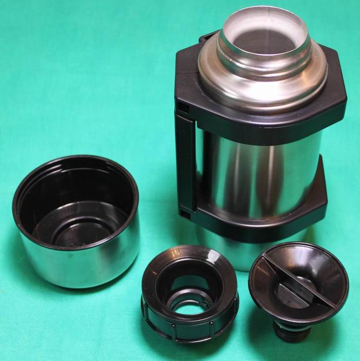 В результате тестов победил термос Tiger MHK-A200 XC. Мне стало интересно, что поспособствовало победе и я решил распилить его. Но двухлитровый термос пилить было жалко, поэтому я нашел литровый аналог и распилил вдоль. И вот что обнаружилось:
