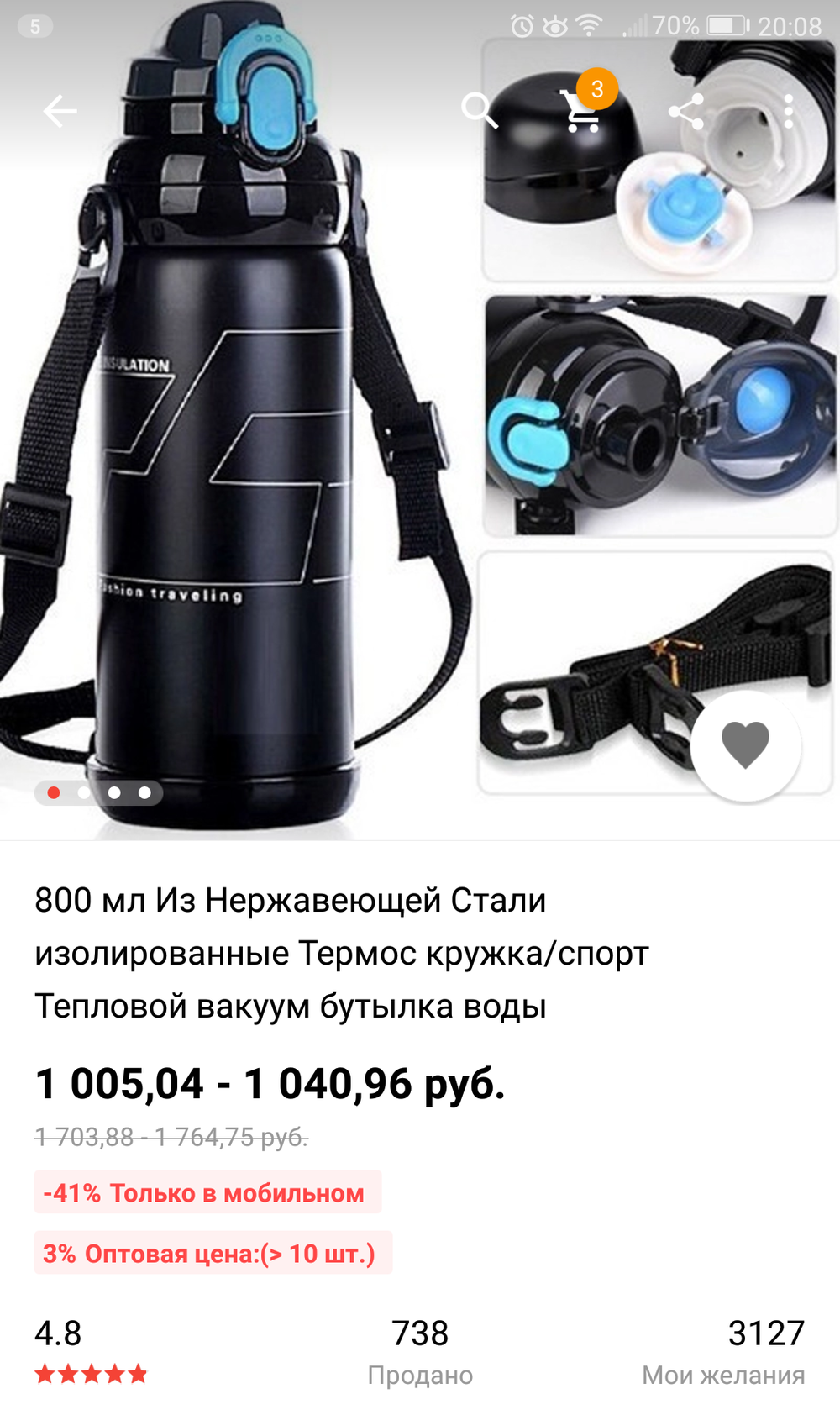 - Пробка без механики, нет возможности повесить термос на ремне