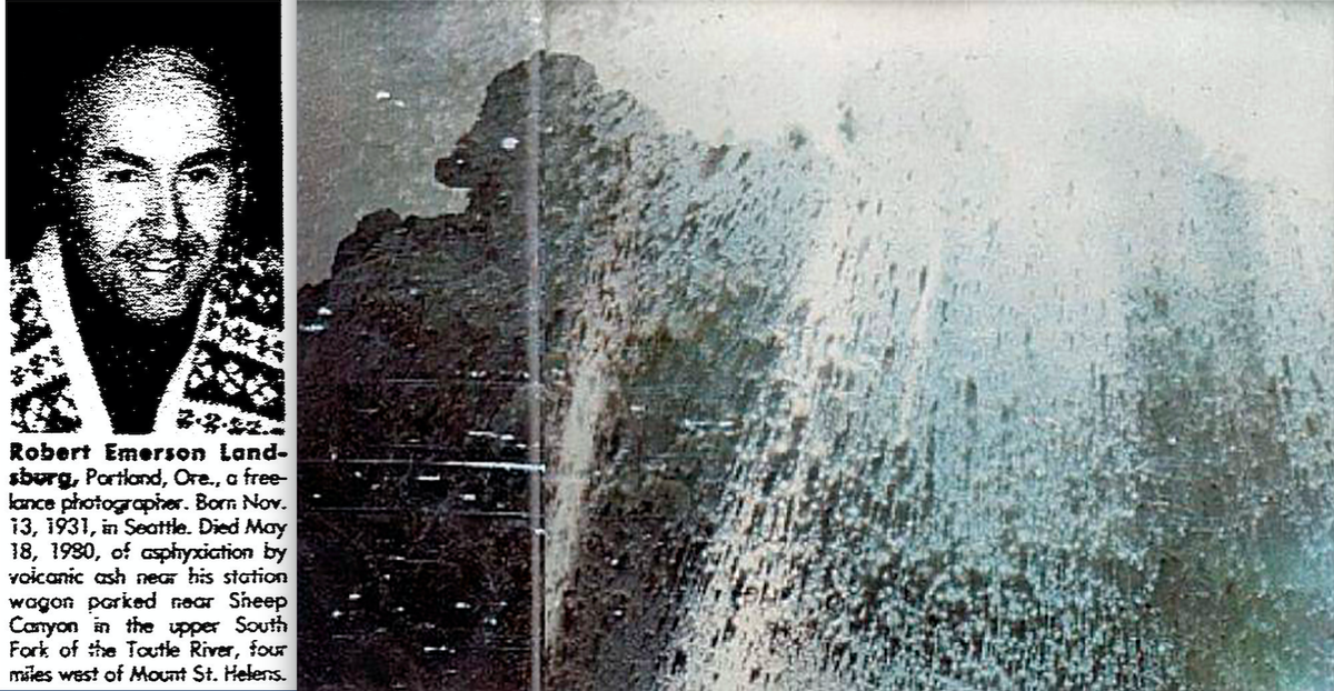 Фотограф Роберт Ландсбург, также дежуривший в нескольких километрах от вершины, понял, что ему не спастись. Он продолжал снимать до последнего, затем смотал плёнку, быстро уложил фотоаппарат в рюкзак, а рюкзак накрыл своим телом. Тело откопали из-под слоя пепла только через 17 дней; на плёнке были бесценные для науки кадры.