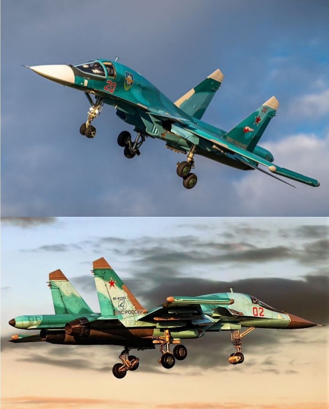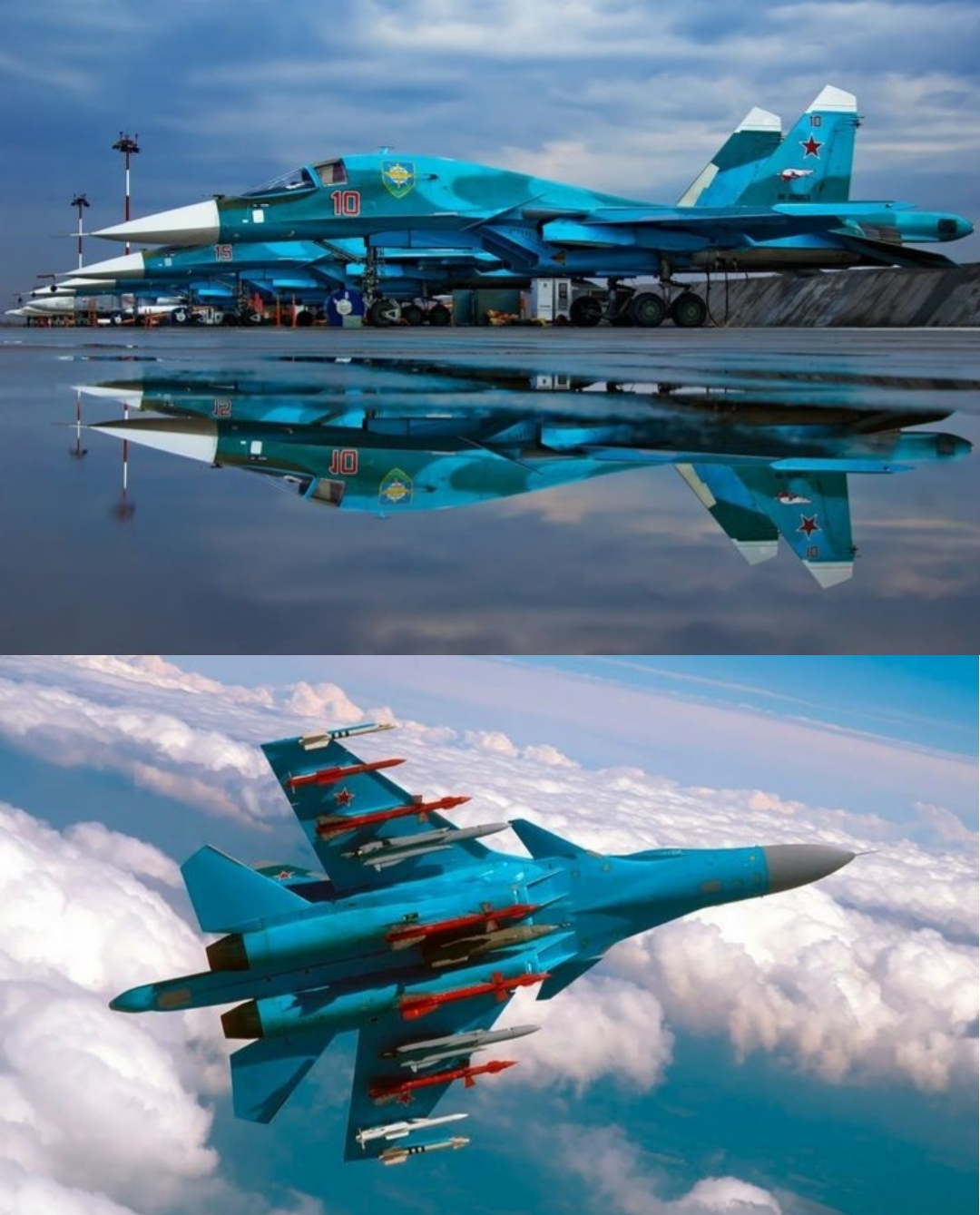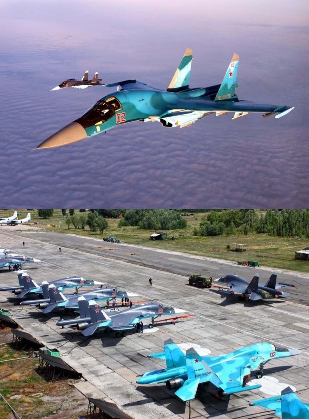 Су-34 — российский многофункциональный истребитель-бомбардировщик, предназначенный для нанесения ударов авиационными средствами поражения по наземным целям противника в оперативной и тактической глубине в условиях сильного противодействия средствами противовоздушной обороны противника за счёт уникальных боевых качеств и применения современных средств радиоэлектронной борьбы, поражения воздушных целей противника днём и ночью в простых и сложных метеорологических условиях.