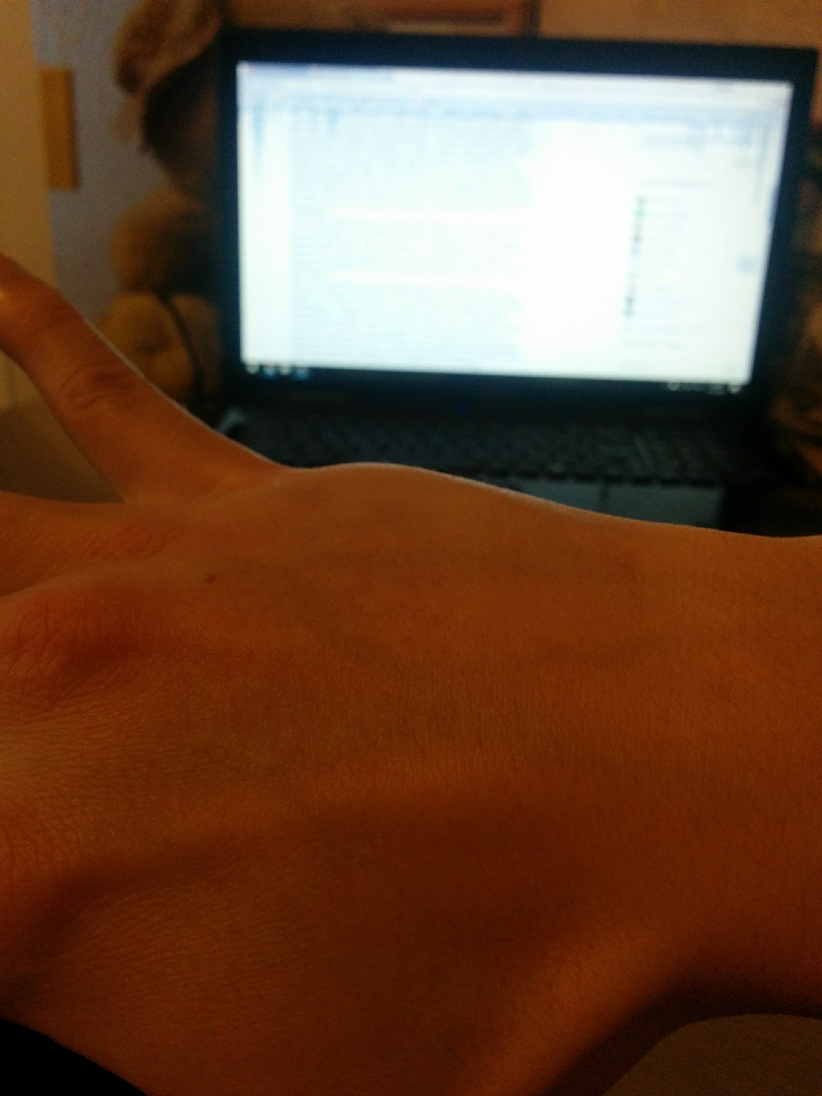 ...Я отвел руку. Ударил в стену. А вот ослабить удар не успел - с тех пор, на память об этом случае, у меня остался выпирающий бугор на руке с правой стороны - его видно, если я сильно согну правую кисть. Простите, отвлекся. Так вот, ударив в стену, я начал прыгать прижимая правую ладонь к себе, а мать увидев что я "небоеспособен", быстренько обулась, накинула куртку и свалила, бросив мне что-то типа "ну и стоило оно того, придурок?".