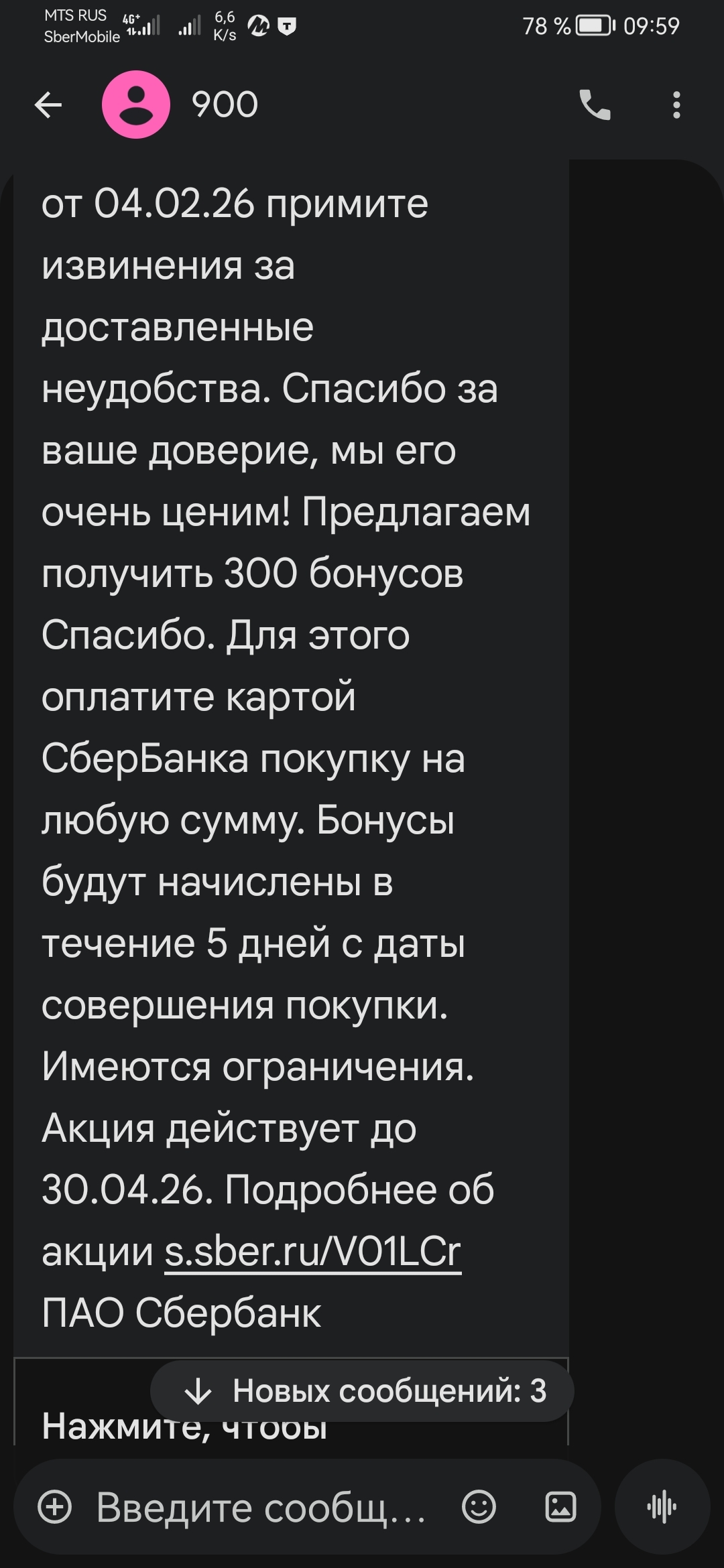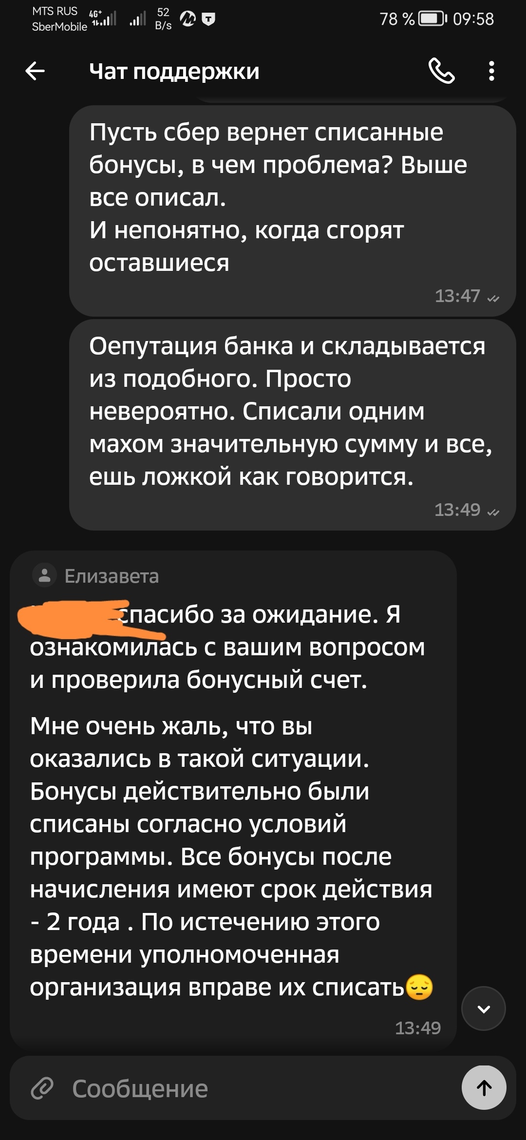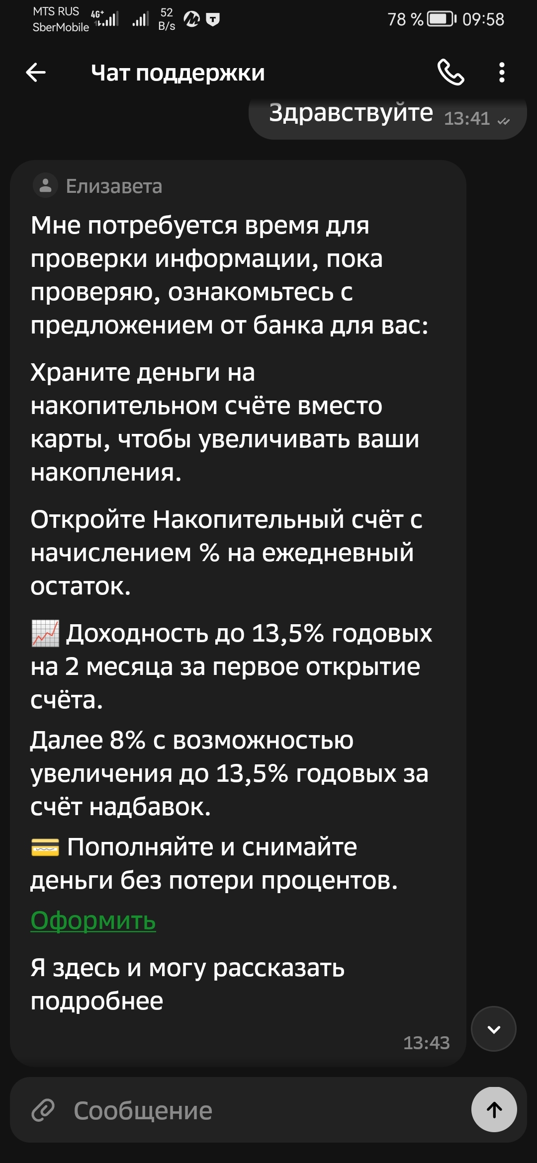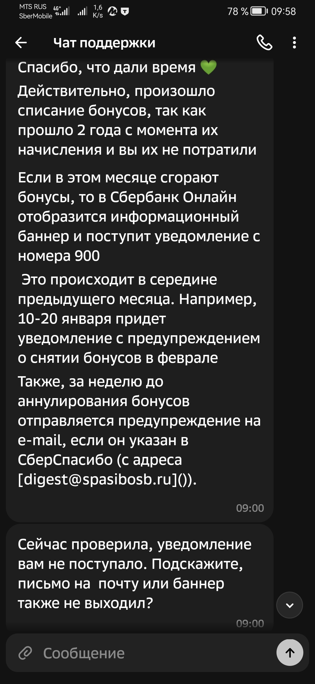 Спустя полчаса после разговора утешение от сбера прилетело: