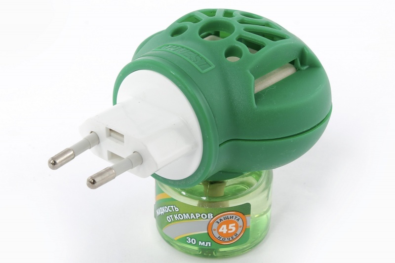 У фумигатора есть два варианта наполнителя - жидкость как на фото, либо пластинки. Я рекомендую жидкость, расходуется она гораздо экономнее.
