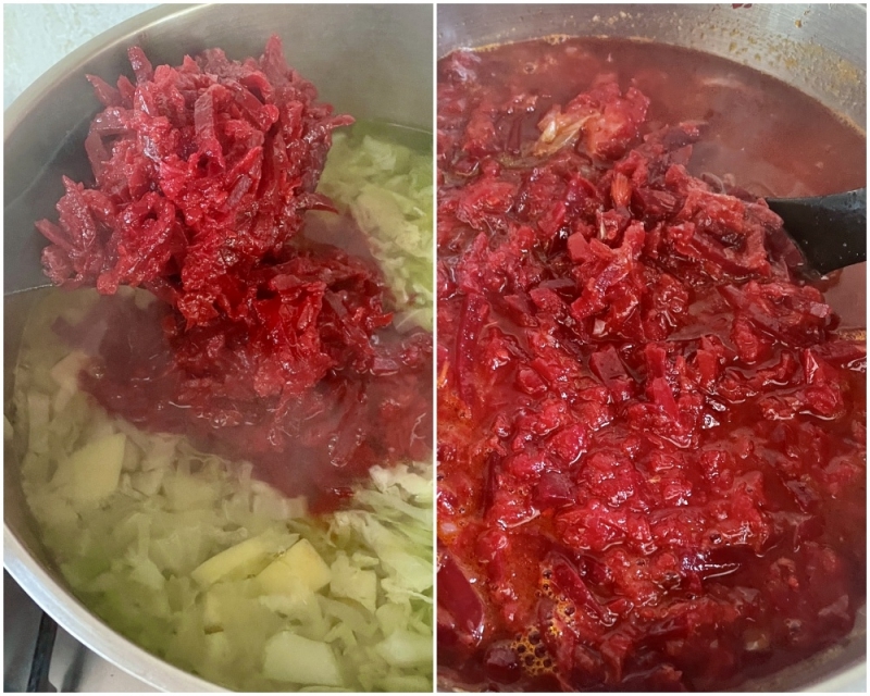А к этому моменту и вышеупомянутая сущность борщовая готова будет. Вот я её в кастрюлю к картофельно – капустной основе и отправил.