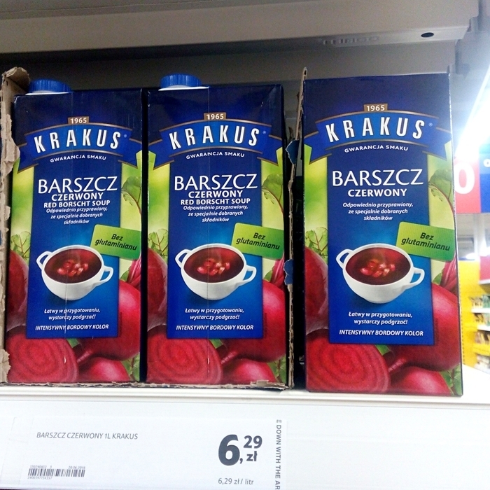 Забавно, что на борще написали про глютен. Ведь любой русский знает, что там злаков нет. А вот америкашкам приходится дополнительно писать про это. А вдруг какой аллергик купит непонятную ему жидкость в баночке, а потом кони двинет. Засудят же всех тогда. А нам еще и санкций новых впаяют, как за Скрипаля.