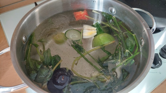 Чтобы любой супец был вкуснее, нужно в него добавить жопу огурца или кабачка или вместе… А если серьезно, то я собираю в морозилке кучу всяких отходов, вроде жоп от овощей, палок и веток от зелени, полумертвый лук и т.д. Когда приходит время варить суп, я сначала достаю все эти огрызки и варю их.