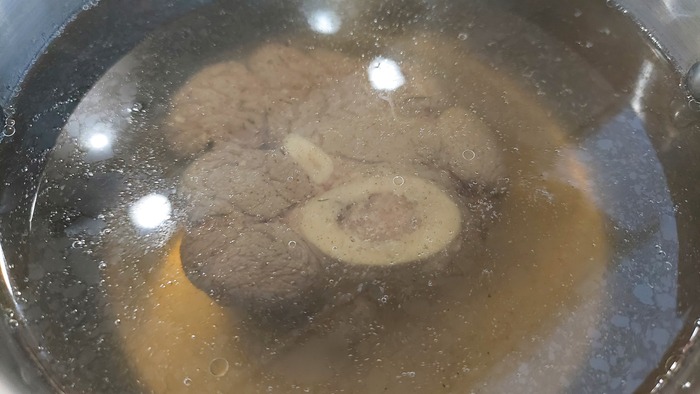 В таком бульончике уже можно и мяско сварить. Сегодня у меня говядина на косточке.