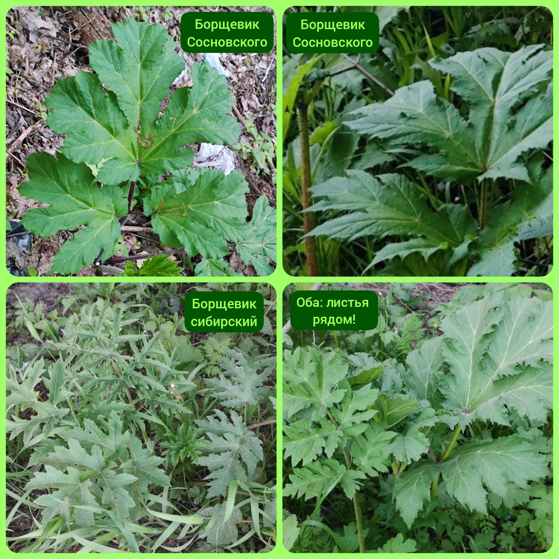 Изменчивость формы листа ☘️ умеют показывать оба: и борщевик Сосновского (чужеземец, с которым боремся), и борщевик сибирский (наш местный вид, не опасный). И пока не распустились цветы, по которым отличить эти два вида совсем легко, придётся нам разглядывать листья. Надо ведь точно определить, бороться ли с вот этим конкретным экземпляром, или нет.😊