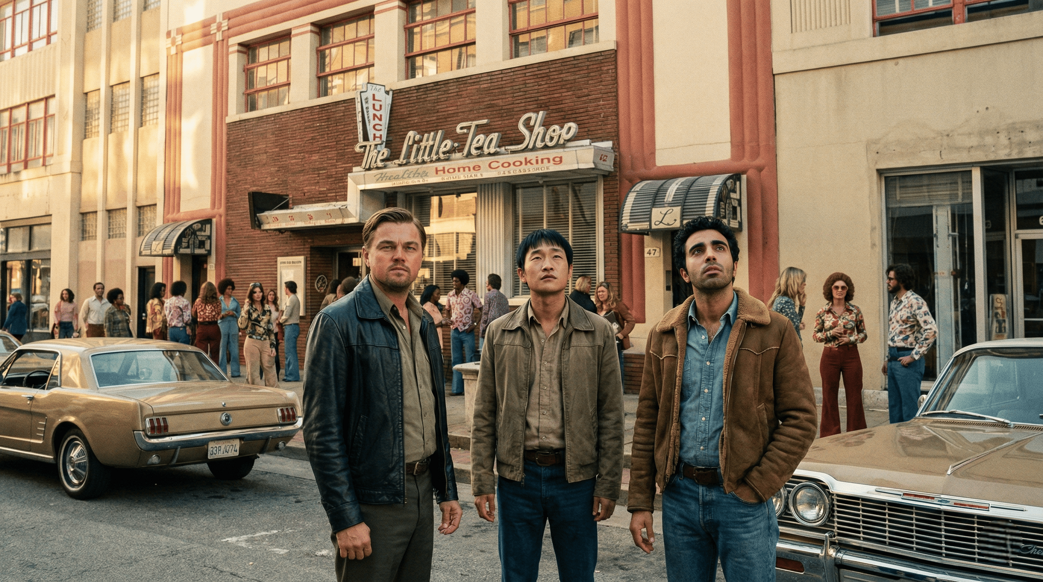 Ли усмехнулся, но всё же не сводил глаз с автомобиля. В этот момент боковое окно машины медленно опустилось, и внутри показался мужчина с культовой причёской и очками-авиаторами. Это был Элвис Пресли.