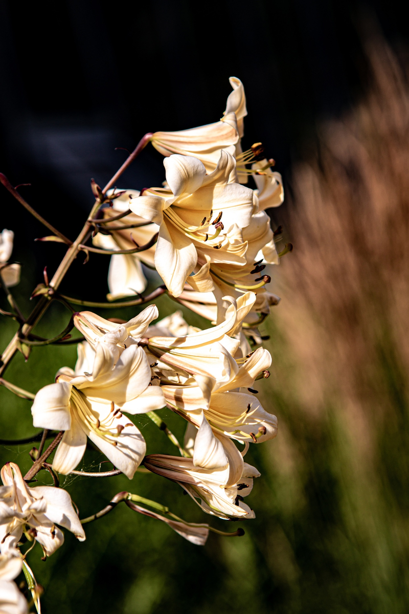 Лилия играет в долгую игру. Каждый цветок стоит дорого — много ресурсов на производство, зато цветёт неделю. На стебле может быть 5-30 цветков, раскрываются постепенно снизу вверх. Общее цветение — месяц.