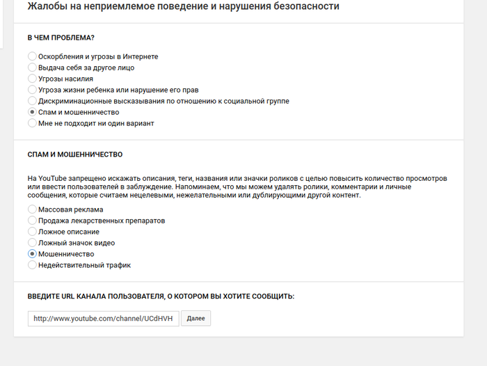 3. Вы бираем "Спам и мошенничество", а конкретно "мошенничество"