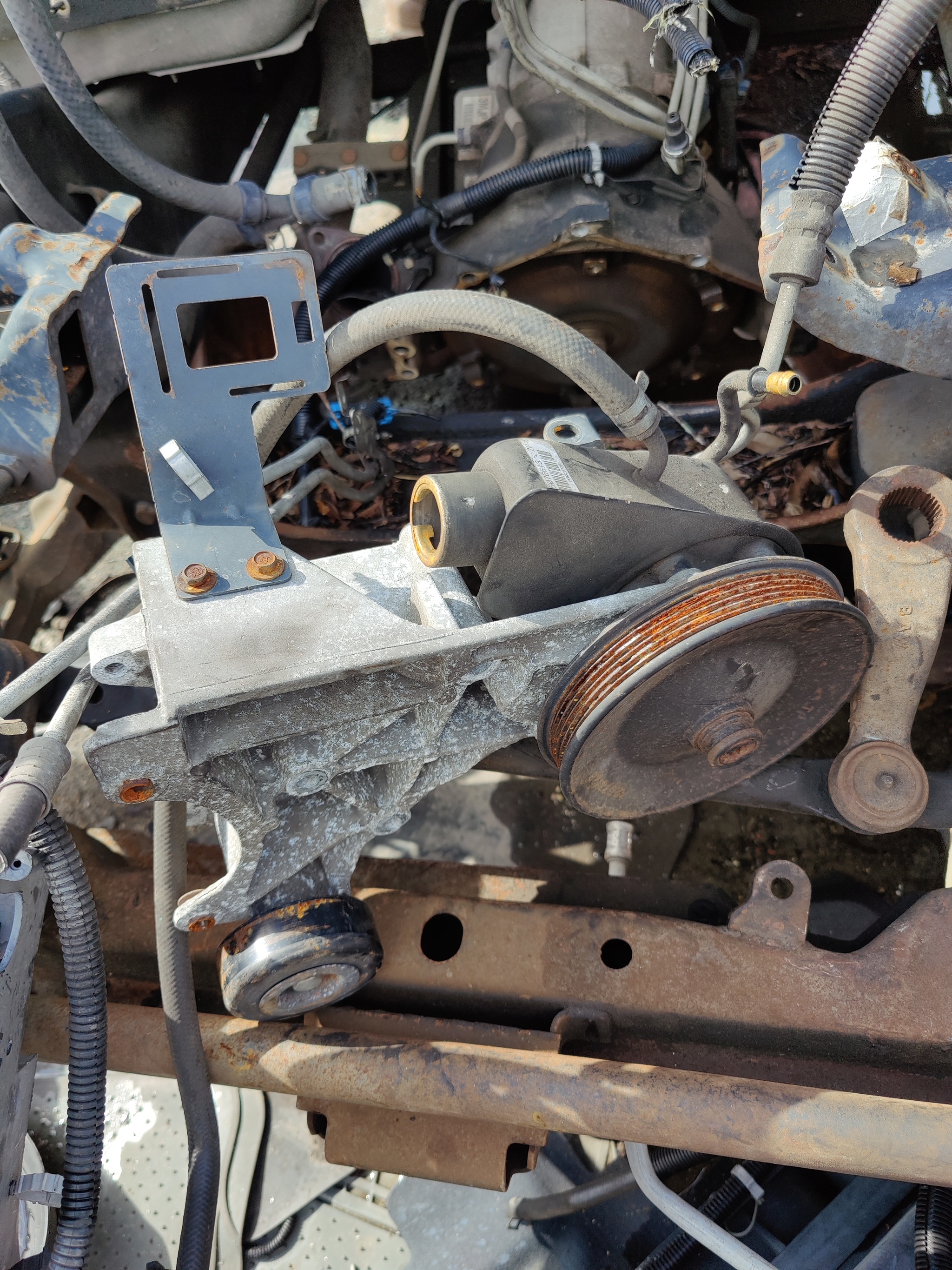Заказали на eBay Шеви блок новый (Вольво пента, что на фото - это и есть блок Шеви), на автосвалке самим доставать нужный мотор влом, разве только мелочевки понаснимали, вот, к примеру, помпа с кронштейном - то что нужно: