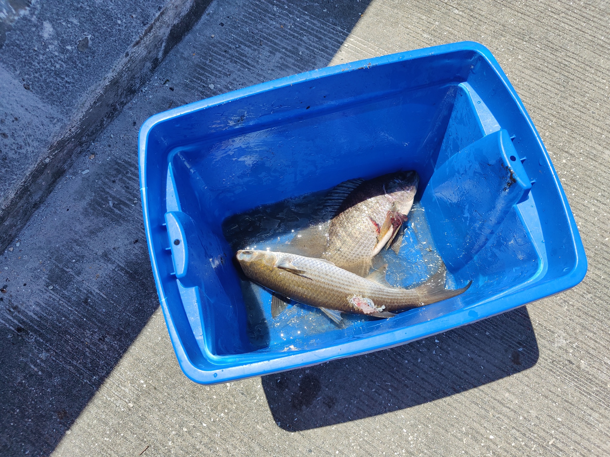 Туда из моря заплывает кефаль, поэтому можете поздравить меня с новой моделью рыбы в копилке трофеев: